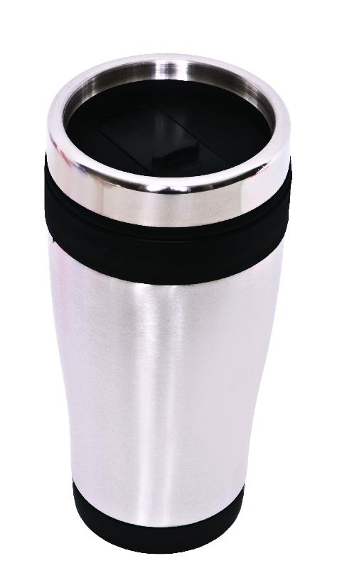 VARSOVIA Termo de acero inoxidable y plástico con capacidad de 400 ml. Tapa de rosca. - MEDIDAS: 17,2 x Ø 8,2 cm