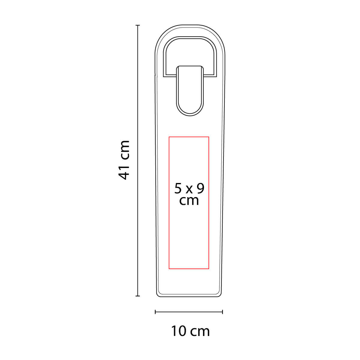 MATERIAL: Curpiel MEDIDAS: 10 x 41 x 10.5 cm IMPRESION: Láser / Serigrafía MED. EMPAQUE: 48 x 23 x 42 cm PESO EMPAQUE: 3.2 Kg PIEZAS EMPAQUE: 40