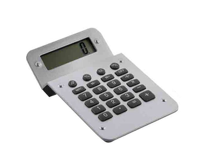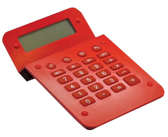 BRECIA - Calculadora rígida con botones de color. Con ángulo especial para mejor visibilidad de la pantalla. Batería incluida. Presentación: caja en color blanco.