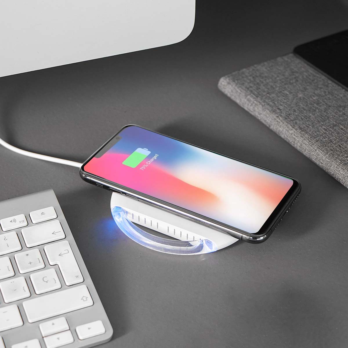 CARGADOR INALÁMBRICO NAMU - Cargador inalámbrico de escritorio para smartphone. Incluye cable cargador. Compatible con la mayoría de dispositivos comerciales que cuenten con tecnología de carga inalámbrica. Potencia de carga de 5W. Incluye cable cargador.