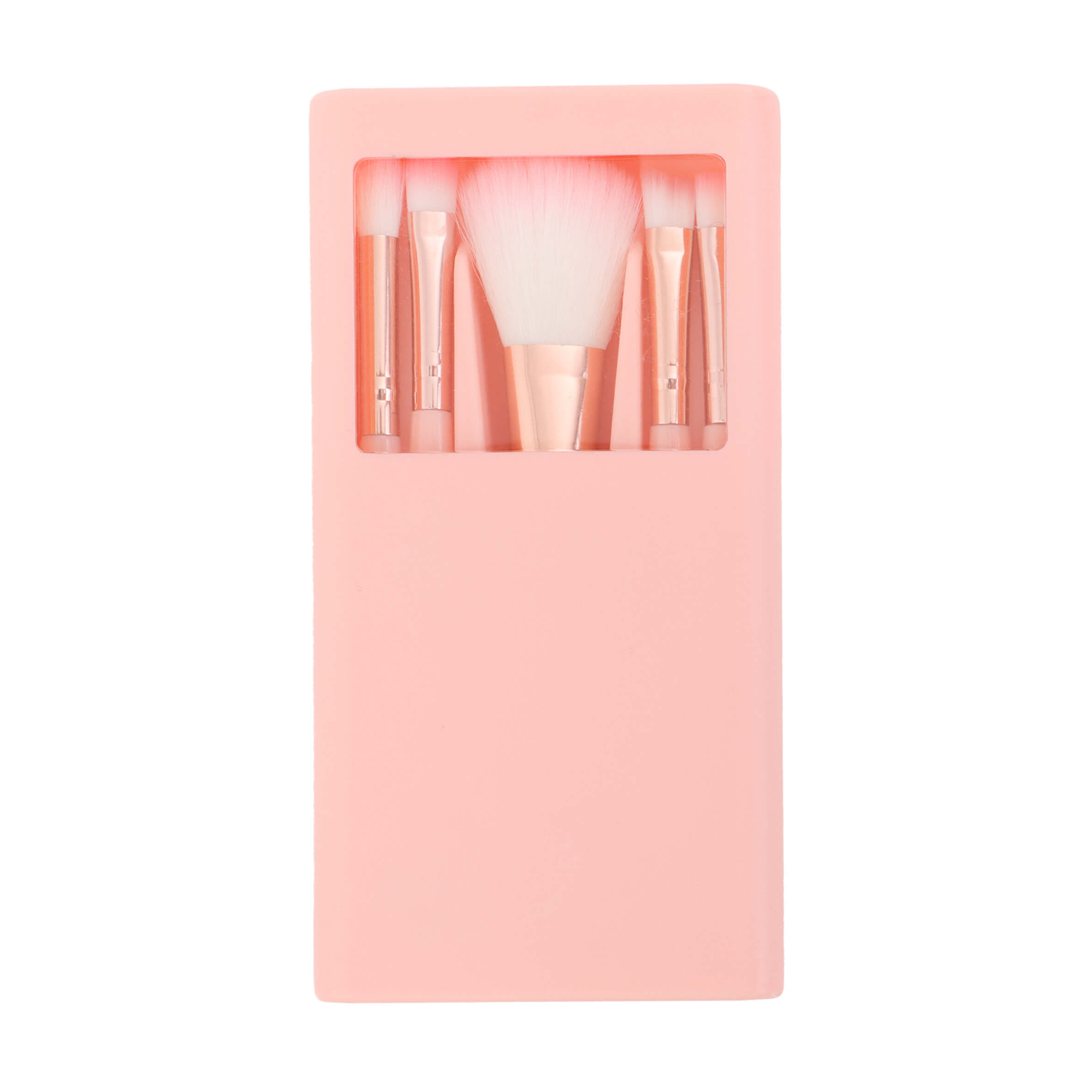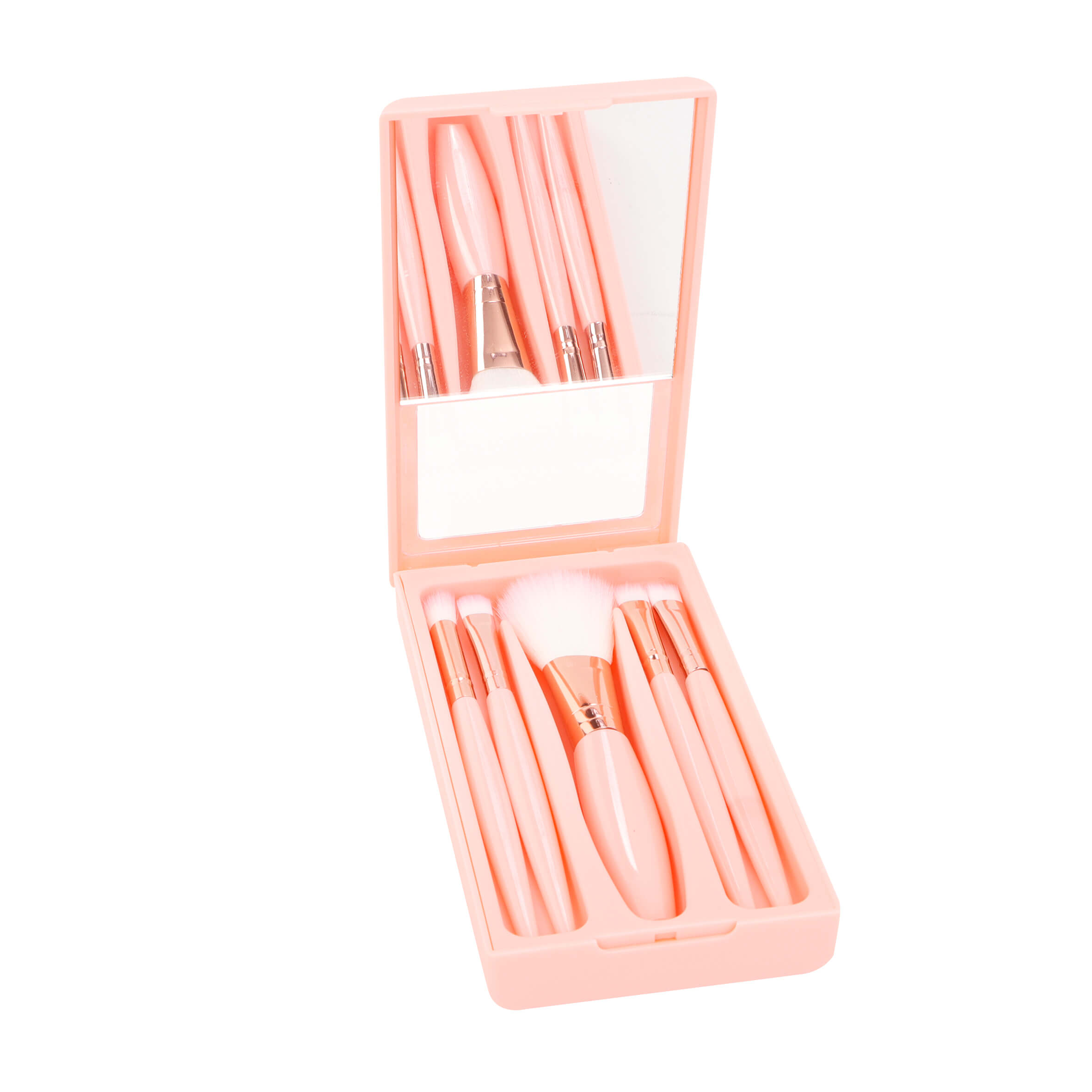 JAGER Set de 5 brochas para maquillaje con espejo y estuche de plástico.