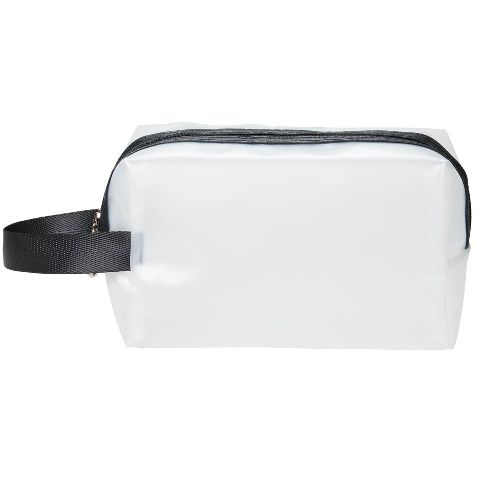 ANIN Cosmetiquera rectangular de plástico con acabado frost, asa y cierre.
