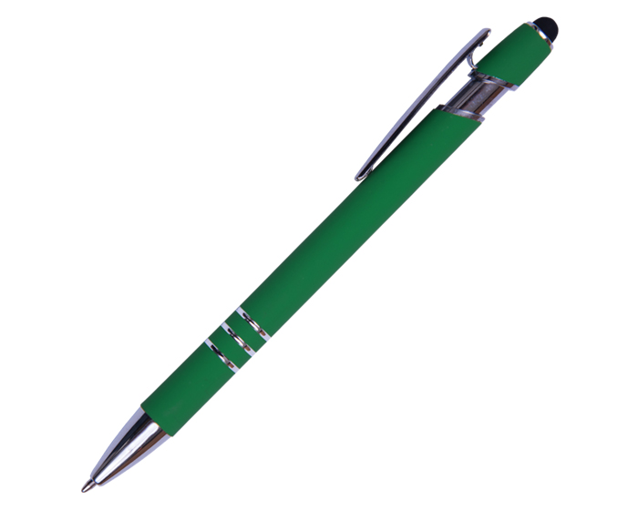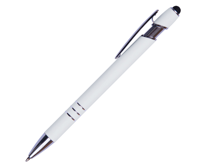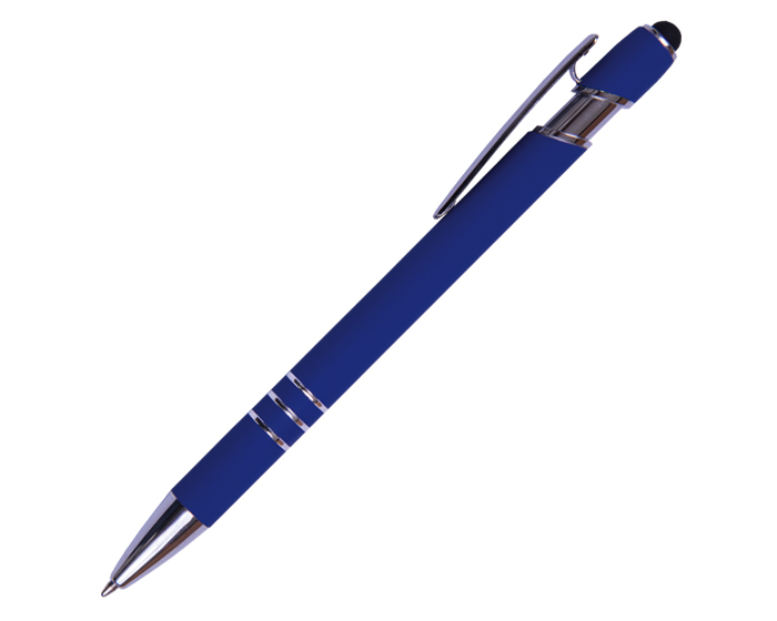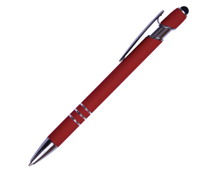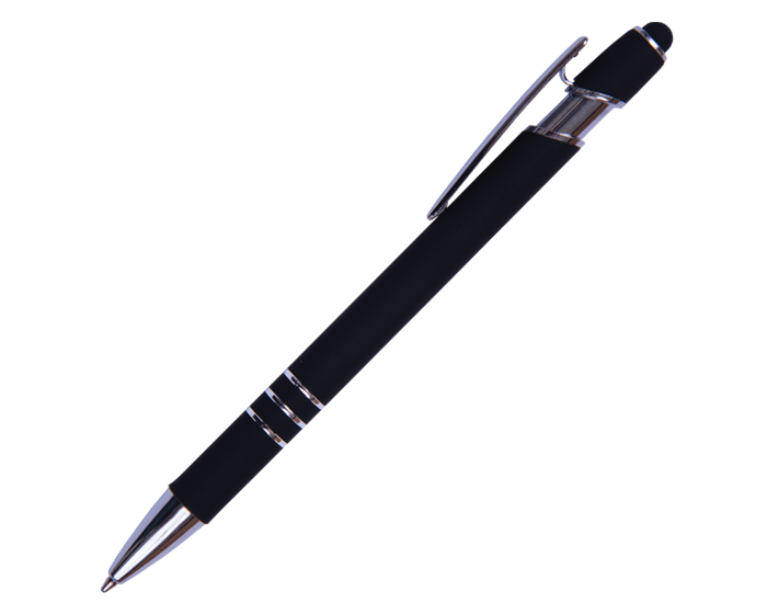 LANCE - Bolígrafo de aluminio con recubrimiento de goma. Con detalles y clip metálico. Punta touch y mecanismo de click.