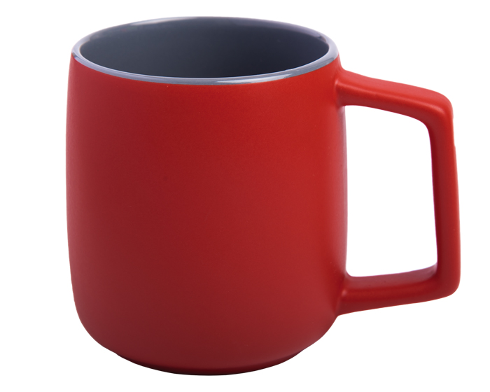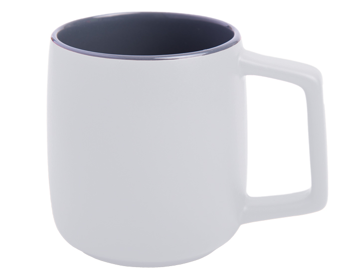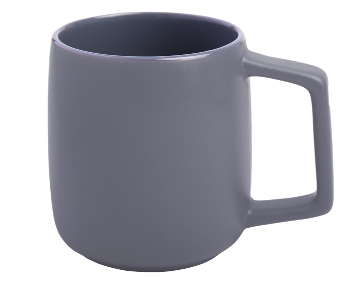 ELVIS - Taza acabado mate, interior color gris brillante y asa cuadrada. CAP. 14 OZ. Venta en múltiplos de 12.