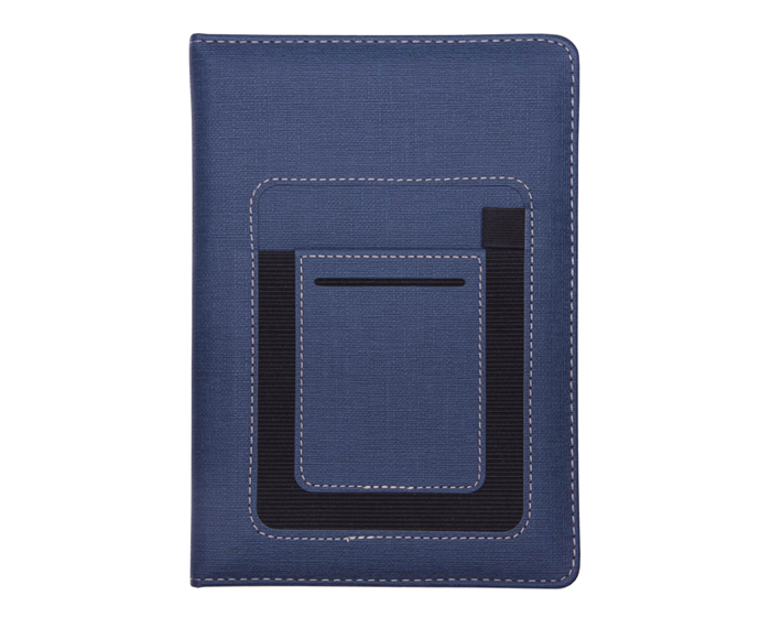 MILÁN - Libreta personal de 80 hojas (160 páginas) con cubierta de curpiel texturizada. Contiene 2 compartimentos uno para tarjetas y otro para celular o notas y banda elástica para bolígrafo.