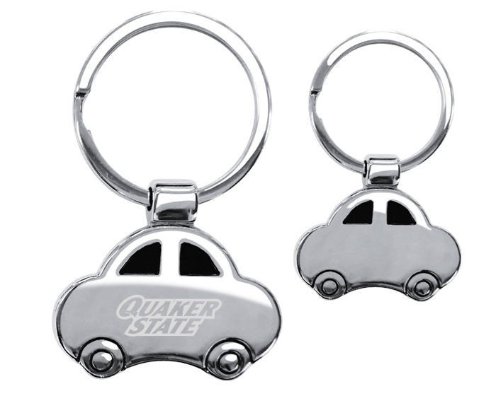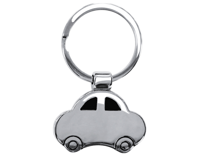 PISTA - Llavero metálico en forma de auto y arillo reforzado. Presentación: Caja individual de kraft.