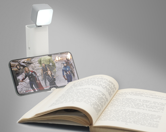 PIXAR - Lámpara de lectura plegable de manejo portátil que incluye: luz led con botón de 3 intensidades (con duración aprox. de 4 hrs.) base desprendible que se utiliza como soporte para celular, power bank con capacidad de 1200 mAh con puerto usb y entrada de carga. Incluye cable de carga universal. Presentación: caja en color blanco.