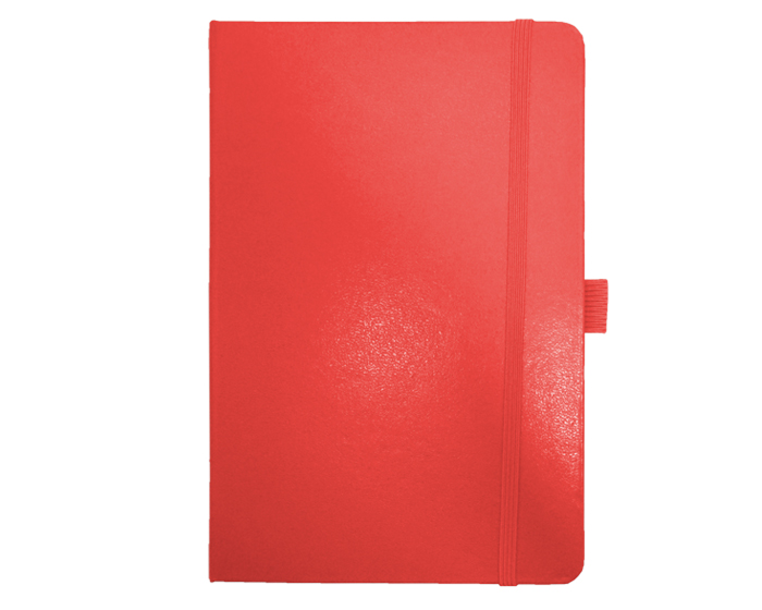 STENA - Libreta de pasta dura plastificada tamaño A5, 80 hojas rayadas (160 páginas). Incluye separador de listón y banda elástica para sujetar la cubierta y bolígrafo (no incluído).