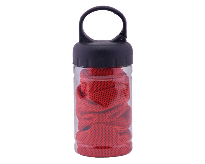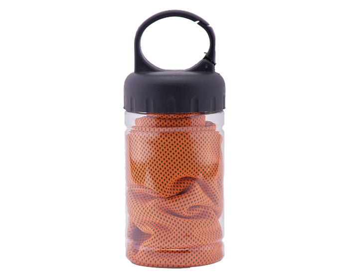 REFRESH - Toalla de microfibra que conserva la temperatura fría por más tiempo. Al tener contacto con la piel produce una sensación de frescura. Ideal para usarse en el gimnasio, playa o en cualquier ambiente o actividad que produzca calor en el cuerpo. Incluye envase transparente de plástico PET con asa, para fácil transportación, el cual tiene una apertura que permite colocarse en la mochila, maleta o en la presilla del pantalón.