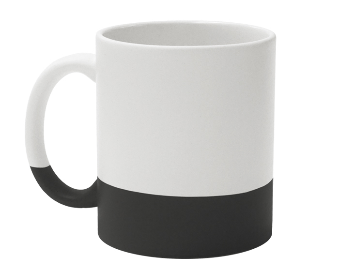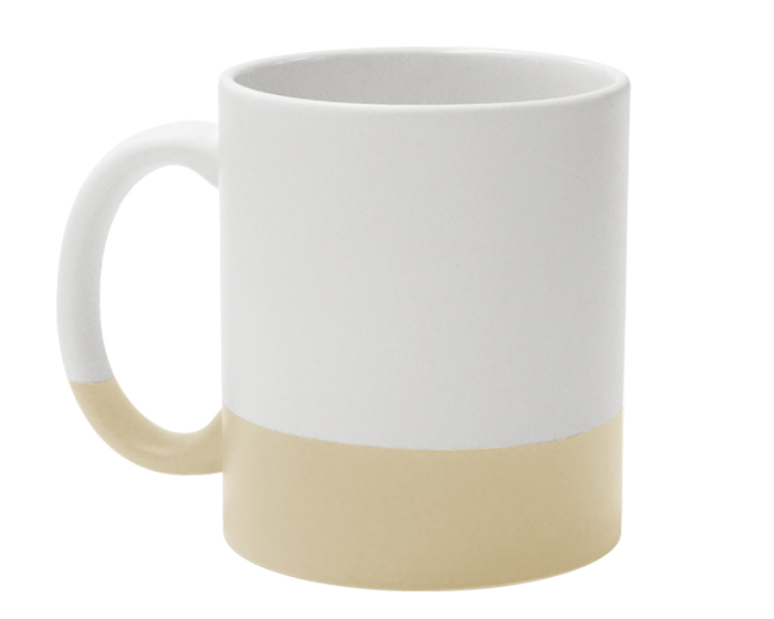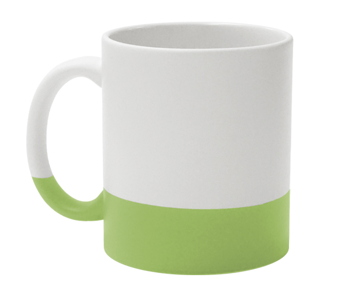 GRES - Tarro blanco mate de arcilla para sublimación, con base y media asa de color. CAP. 325 ml. (11 OZ).