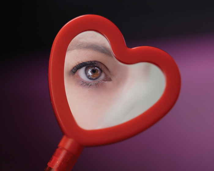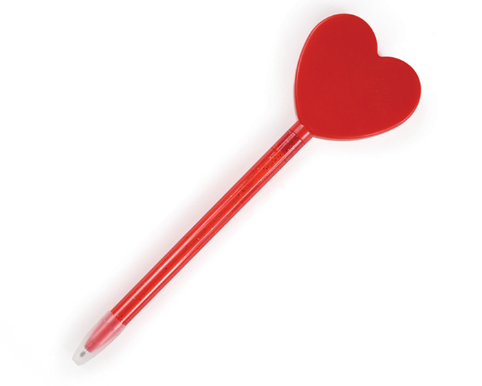 LATIDO - Bolígrafo delgado de plástico traslucido con cuerpo de glitter y forma de corazón con espejo.