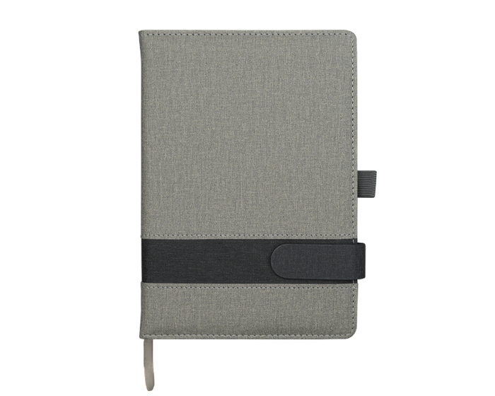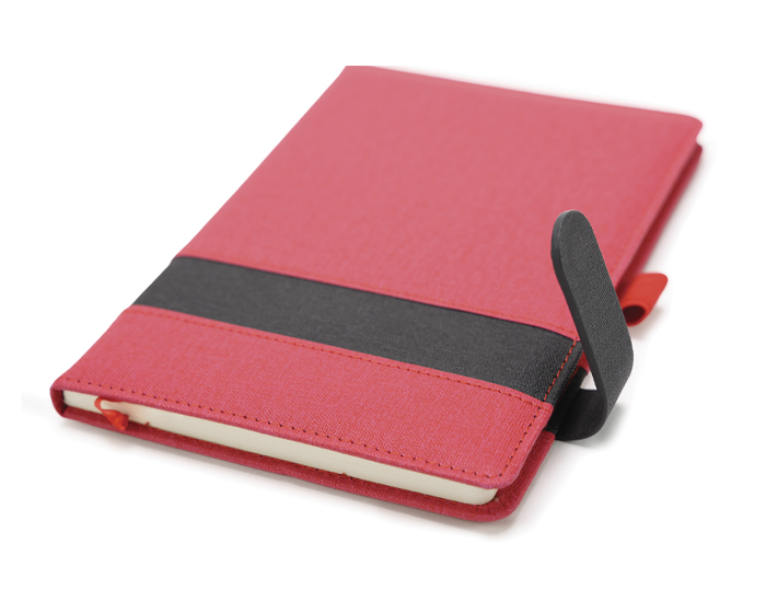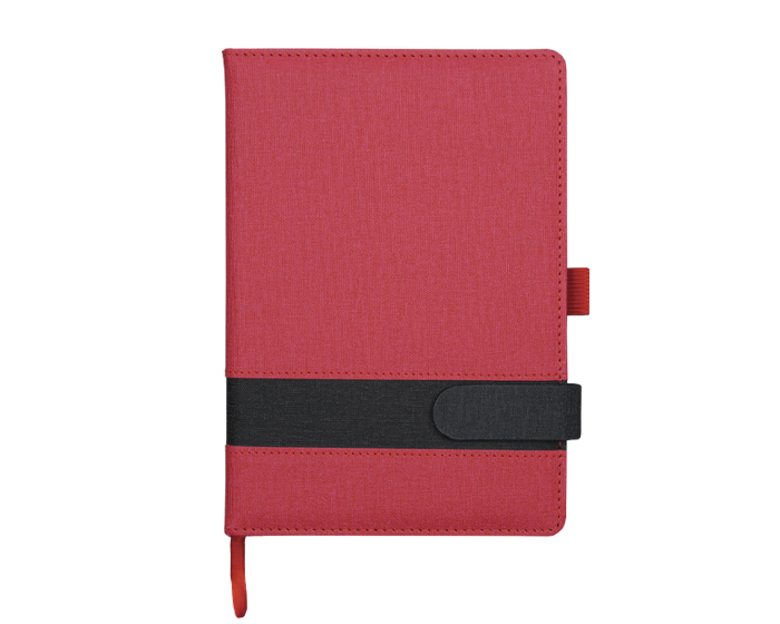 BETHOVEN - Libreta A5 poliuretano texturizado con cintillo magnético en color negro; cuenta con 80 hojas ralladas, resorte para bolígrafo y separador en color de la libreta.