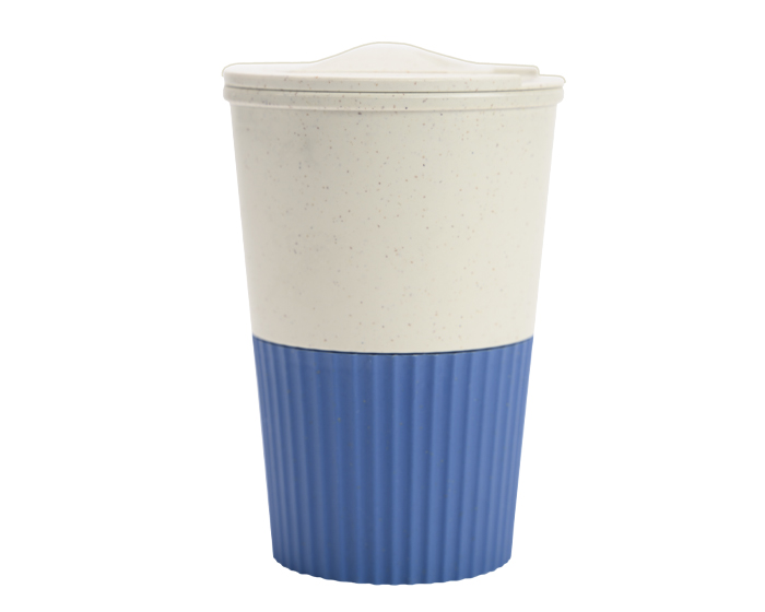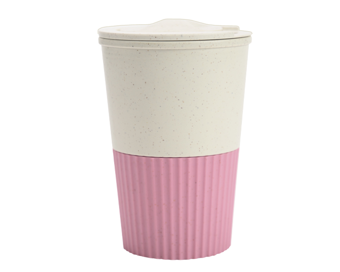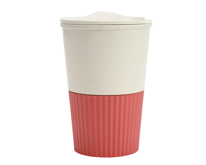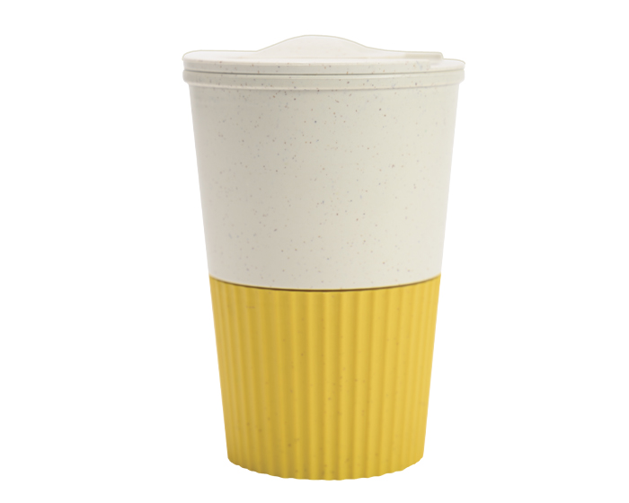 COFFY - Vaso de fibra de trigo, con tapa de rosca y seguro deslizable, cuenta con diseño de manga de color texturizada. CAP. 380 ml.