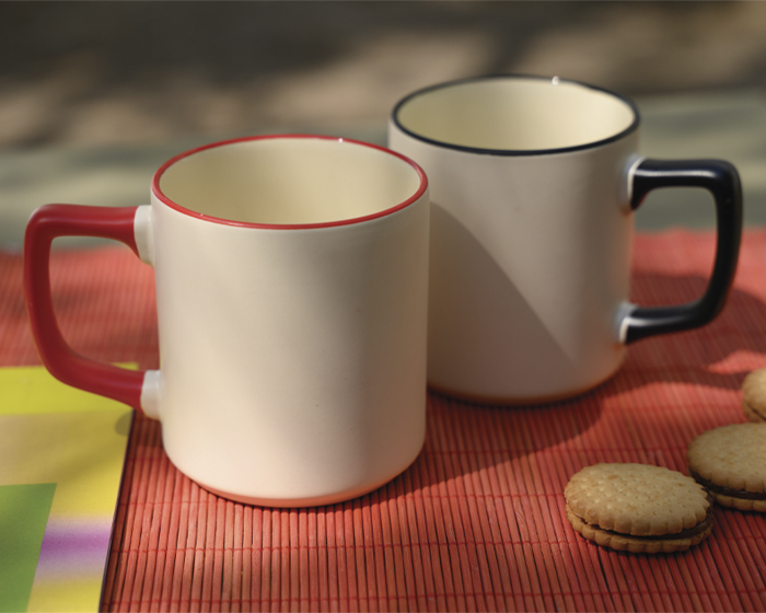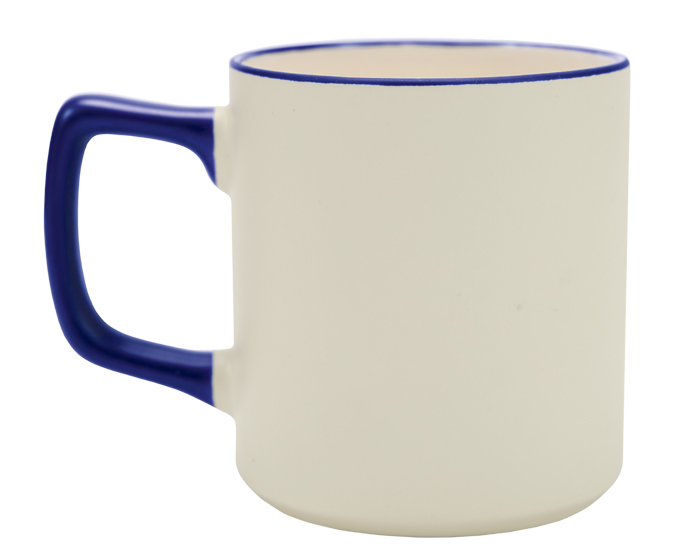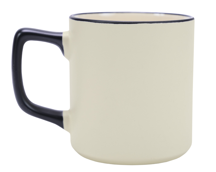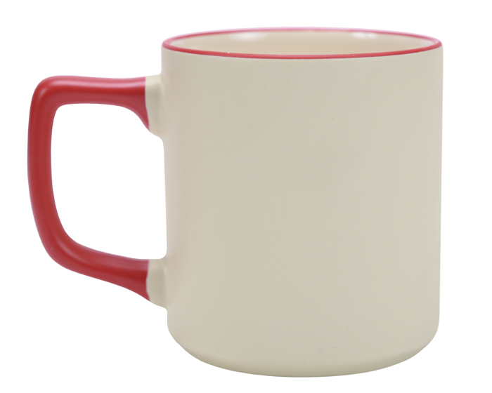 SABRINA - Tarro de cerámica de sublimación con asa y filo de color. CAP. 400 ml. (13.5 OZ). Venta en múltiplos de 12.