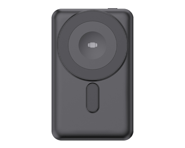MAGNETIC - Batería inalámbrica portátil wireless de carga rápida, con función de carga magnética para dispositivos móviles (15W) y relojes inteligentes(2.5W). Capacidad de 5,000 mAh, 5 indicadores de luz de carga de la batería, entrada de carga tipo C (Incluye cable de carga), botón de encendido/apagado y 2 cables de salida para carga de dispositivos móviles: 1 entrada tipo C y uno entrada para iphone. Incluye soporte metálico para dispositivos móviles. Compatible con dispositivos Android e iOS. Presentación: Caja de regalo a color. (Para carga inalámbrica verifique la compatibilidad con sus dispositivos móviles).