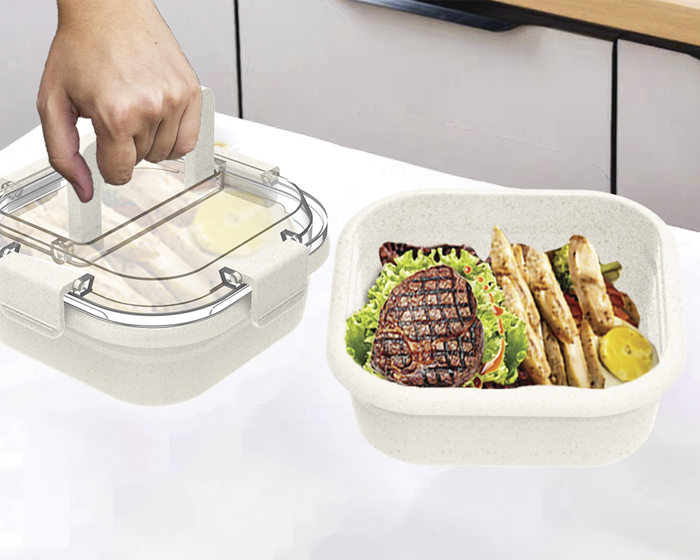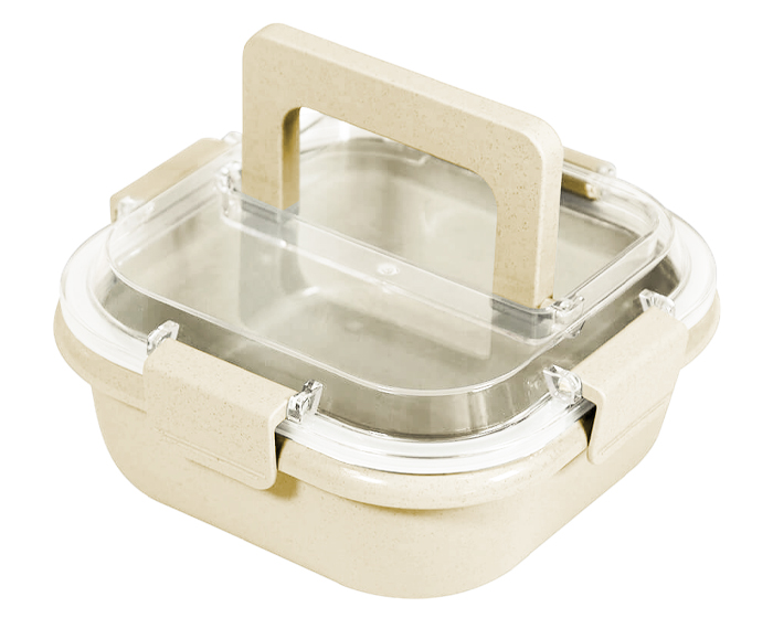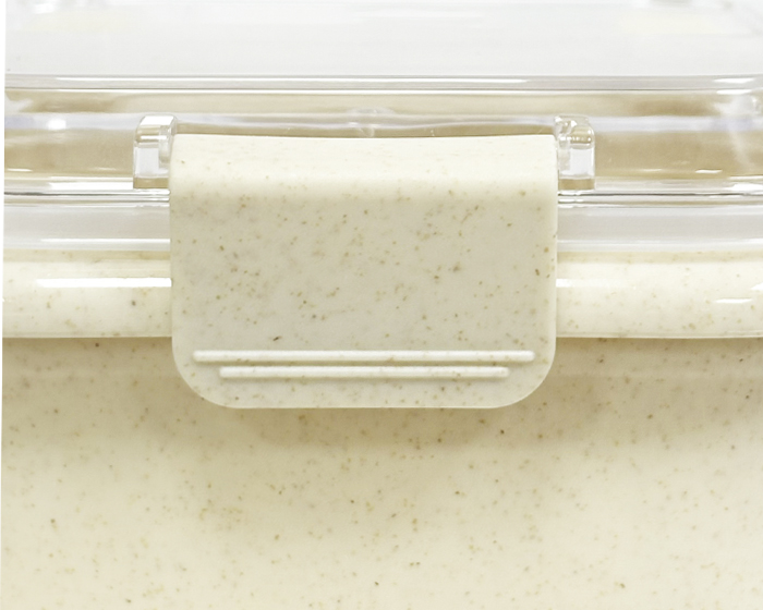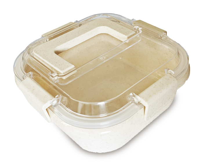 TATIANA - Box lunch de fibra de trigo con tapa hermética de plástico con broches de seguridad y asa.