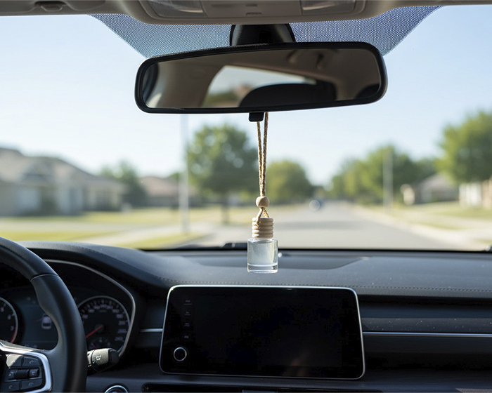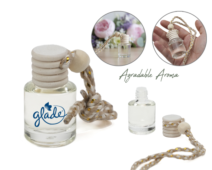 EOLO AROMAS - Botella difusora de vidrio de 5 ml. con fragancia; la tapa de madera se impregna desprendiendo el aroma contenido. Ideal para coches, closets o lugares pequeños. Cuenta con cinta ajustable para colgarse. Fragancia incluida. Presentación: Caja individual.