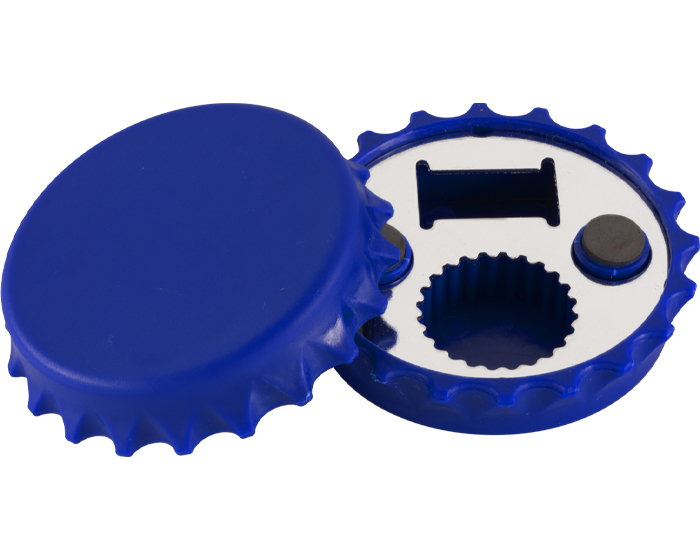 SÚPER CORCHOLATA - Destapador en forma de corcholata, con dos funciones: destapador plano, para quitar corcholatas metálicas y abridor dentado para las tapas de rosca de cerveza. Incluye imán para colocarse en superficies metálicas.
