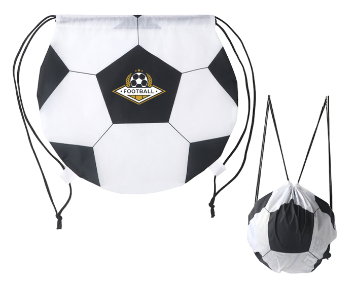 TIQUITACA - Morral con diseño de balón de fútbol soccer, cuenta con jaretas ajustables y apertura central de hasta 35 cm.
