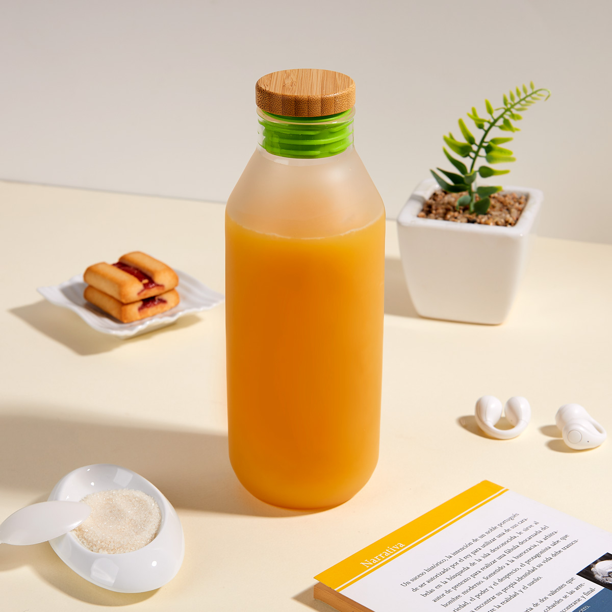 BOTELLA DE VIDRIO "PARK" Cuerpo traslúcido con tapa a rosca de bambú. Botella ...