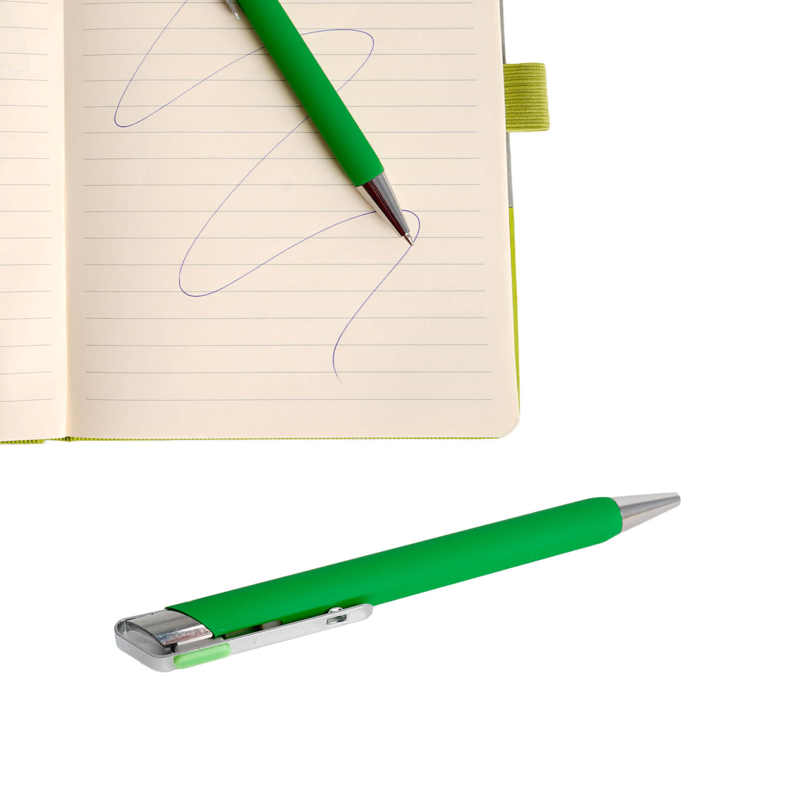 ARUCA Bolígrafo metálico con acabado rubber, clip y mecanismo de click.