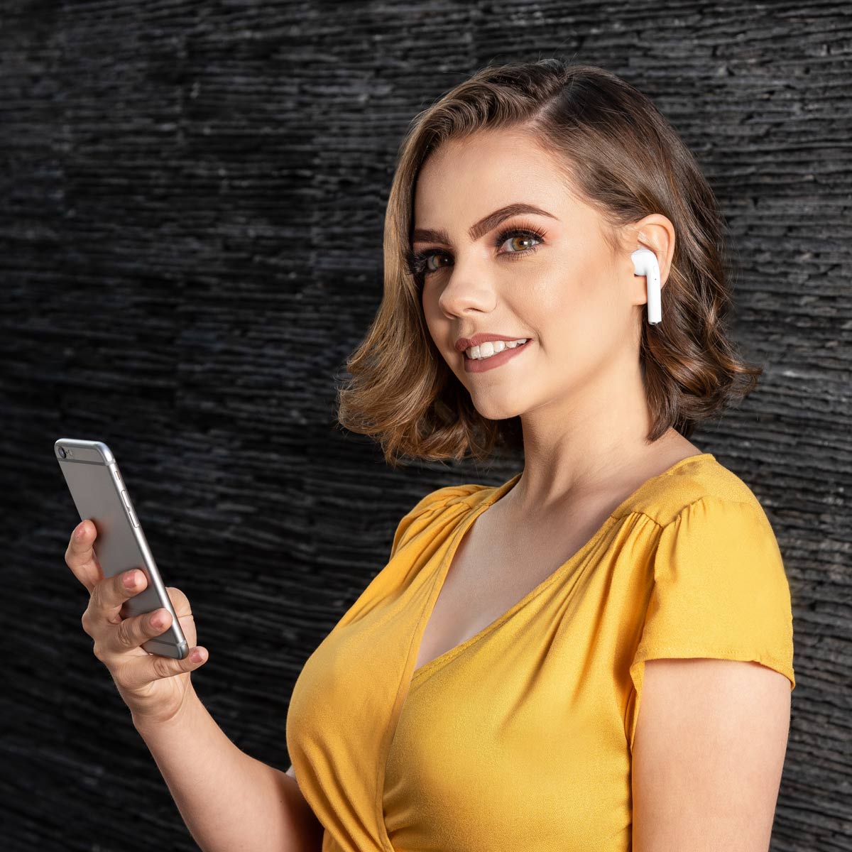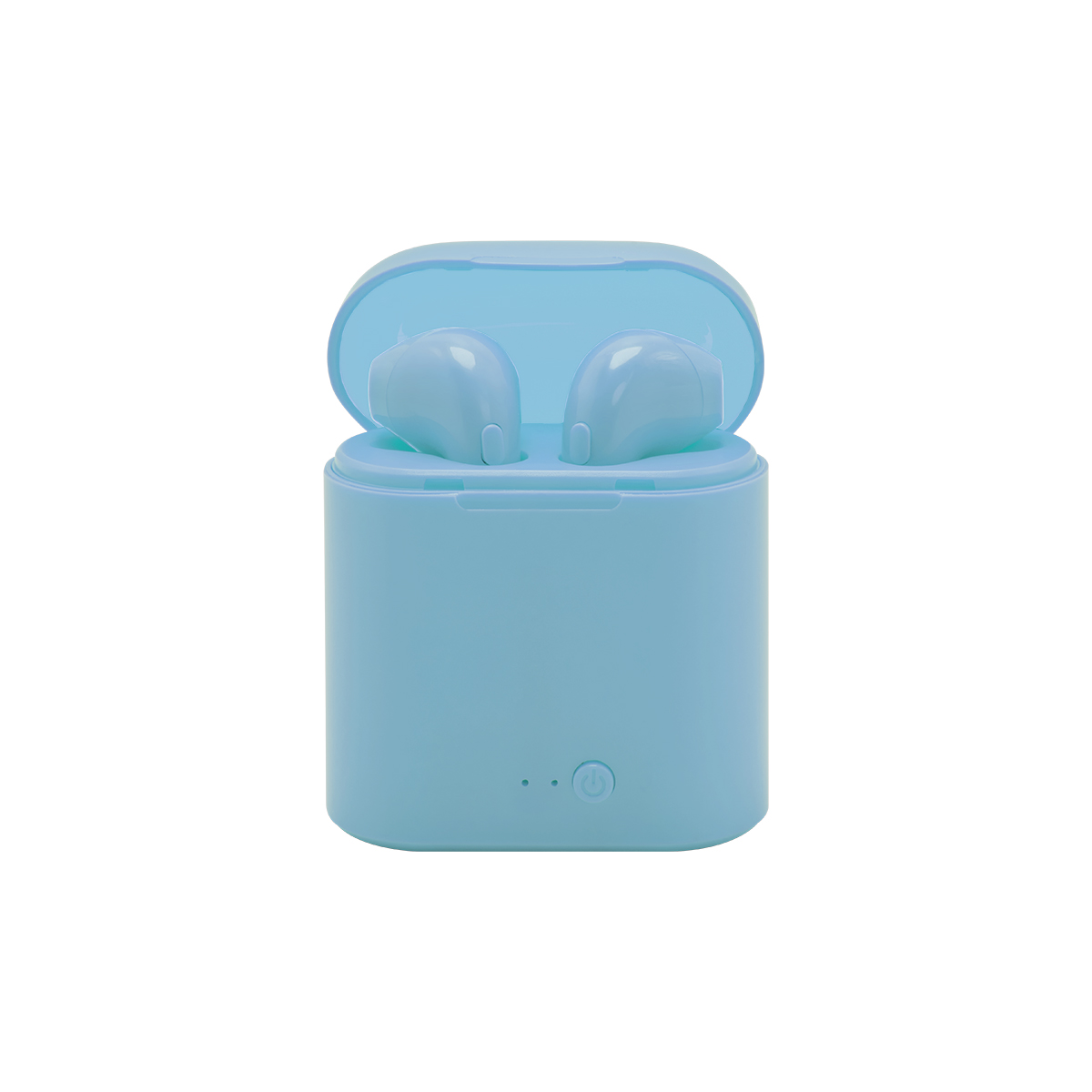 AUDÍFONOS SARAJEVO - Audífonos bluetooth inalámbricos con batería recargable. Función manos libres. Reproducción de música 2 hrs aproximadamente. Incluye estuche para recargar los audífonos y cable cargador USB.