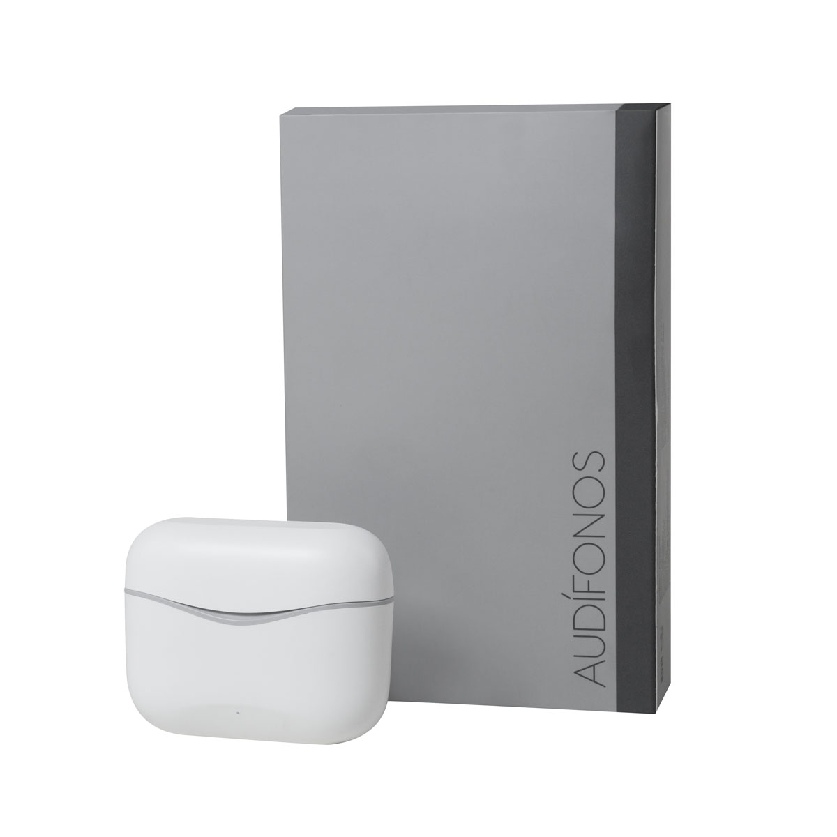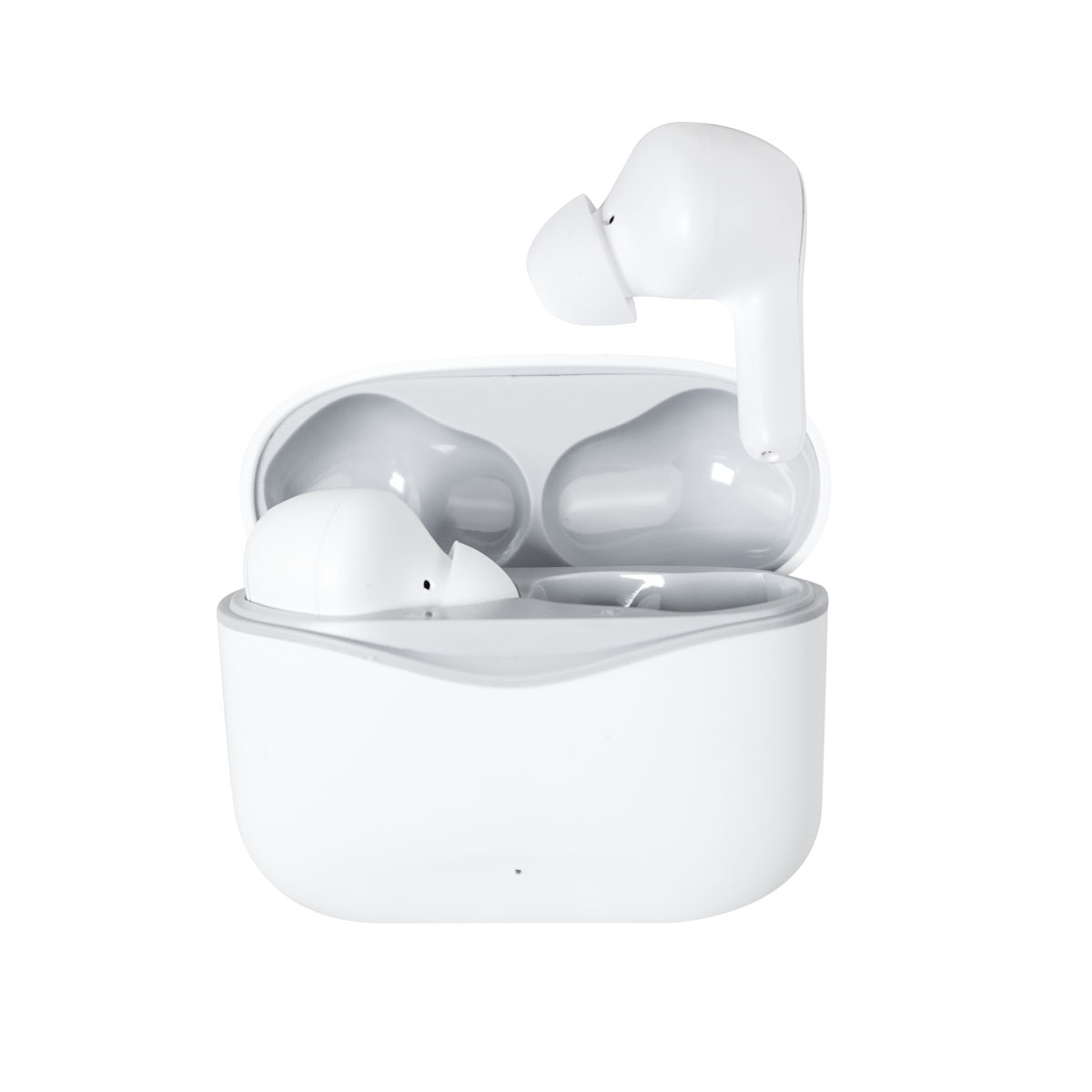 AUDÍFONOS LESLY - Audífonos bluetooth con base recargable. Controles integrados touch para llamadas, volumen y reproducción de audio. Reproducción de música 2 a 3 hrs aproximadamente. Rango de conexión de 10 metros. Incluye estuche de carga y cable cargador USB.