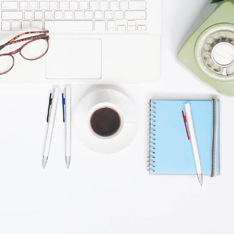 Bolígrafo con mecanismo giratorio y barril blanco. Medidas: 13.5 x 1.3 cm Material: Plástico. Empaque: Bolsa de celofán.