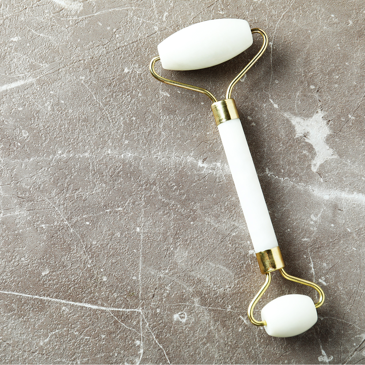 Set masajeador Bakel - Rodillo de cuarzo blanco para masaje facial con bolsa de tela. El rodillo de cuarzo para masaje facial es una herramienta versátil y elegante que puede contribuir a mejorar la salud y la apariencia de la piel del rostro. Su estuche de tela es ideal para mantener el rodillo limpio y protegido cuando no está en uso.