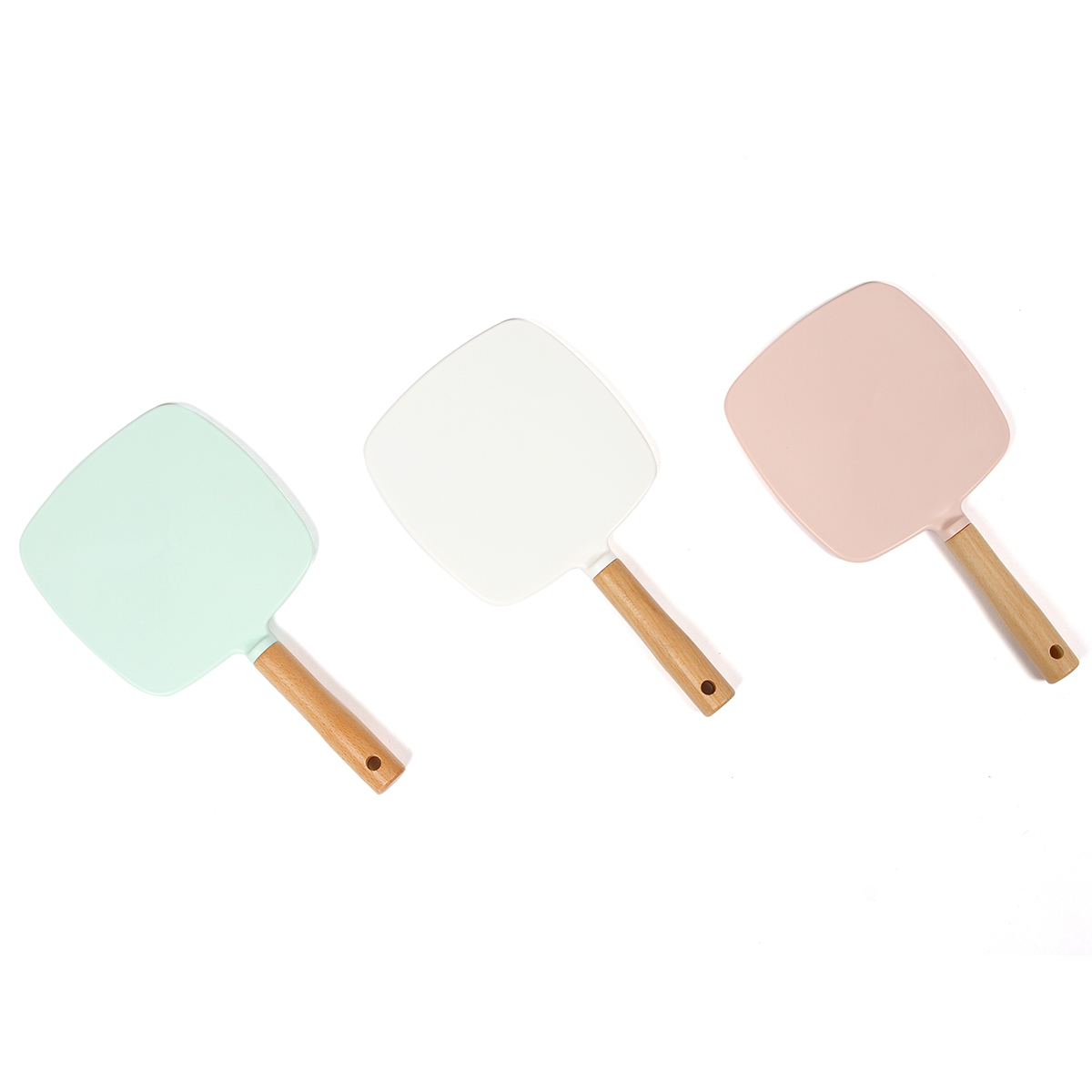 Espejo Darney. - Espejo con forma cuadrada con puntas redondeadas fabricado en plástico tipo PS caracterizado por colores con acabados brillantes y es liviano. Cuenta con mango en madera con acabado en laca para una mayor protección y abrasión.