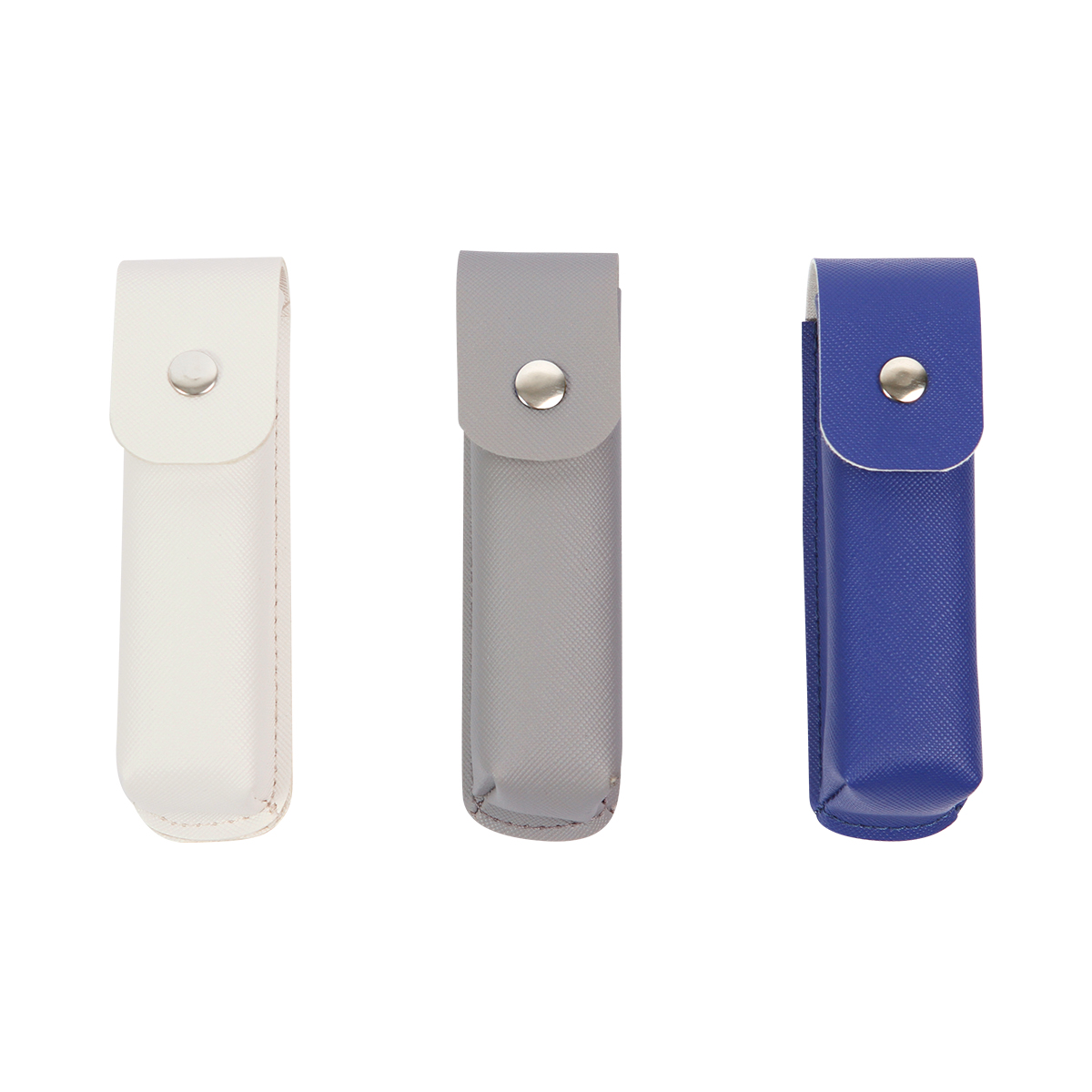 Pastillero Linden. - Pastillero rectangular de plástico con funda de curpiel con cierre de broche. El pastillero cuenta con tres compartimentos individuales para pastillas o cápsulas. Es un accesorio práctico y conveniente para organizar y llevar tus medicamentos de manera segura.