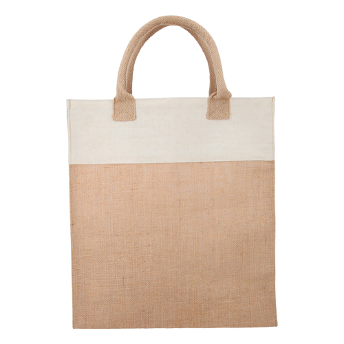 ZICATELA Bolsa de yute y algodón con interior plastificado con asas y fuelle.
