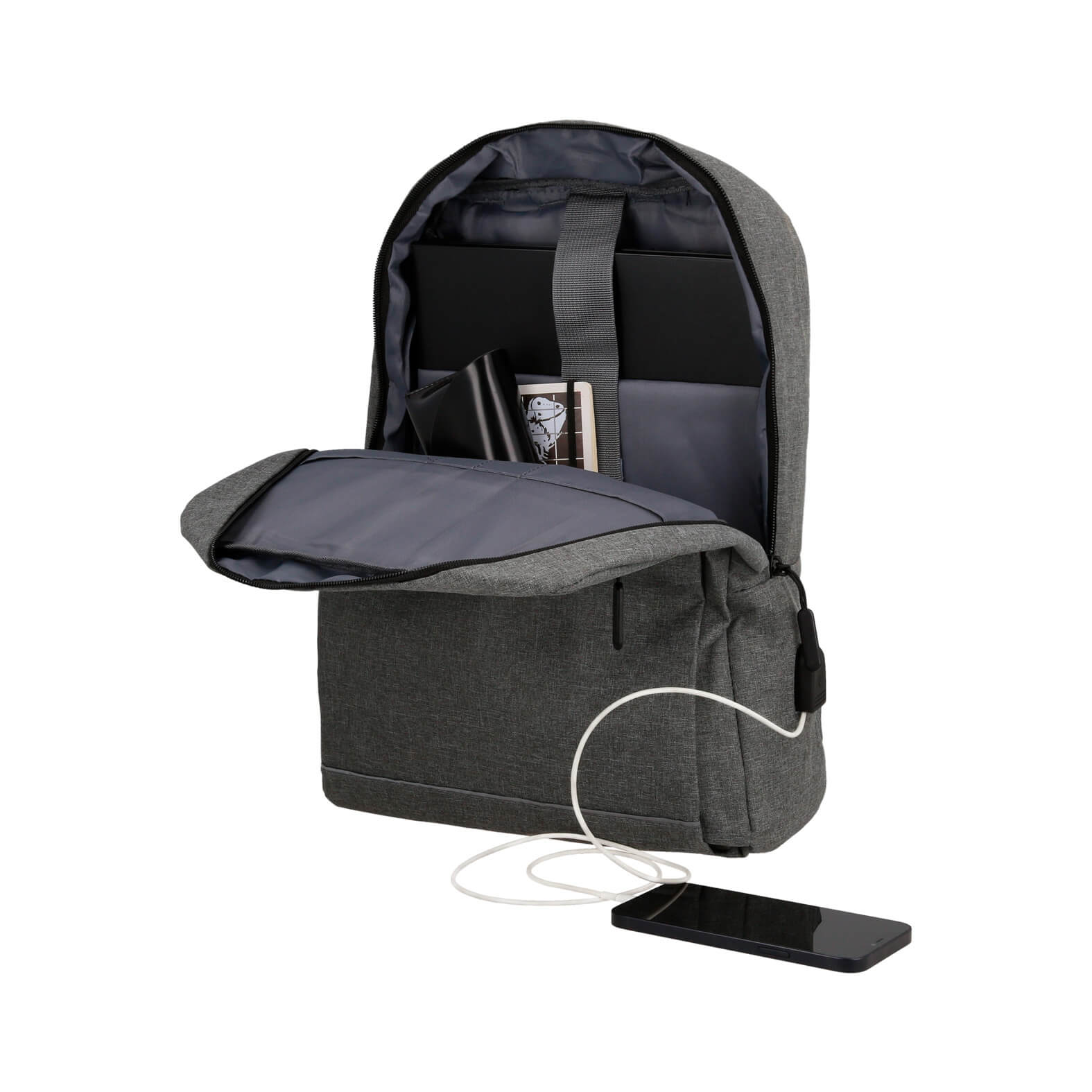 BHAK Mochila de 1 compartimento con porta laptop, organizador interior, entrada lateral de batería portátil, 1 bolsa frontal con cierre, tirantes acolchados y asa metálica superior.