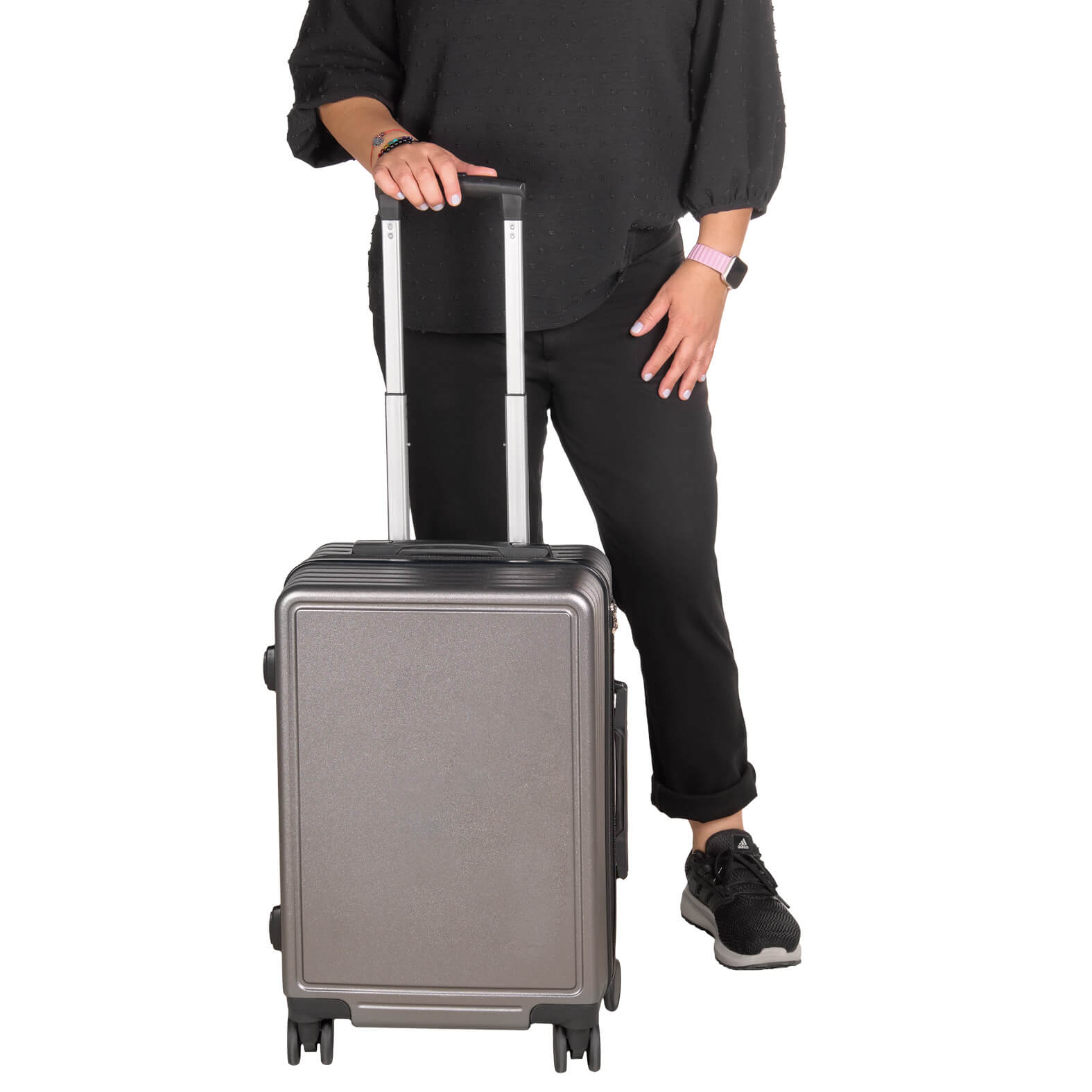VOYAGE Maleta de plástico para viaje. Cuenta con doble rueda giratoria, asa metálica retráctil y candado de seguridad.