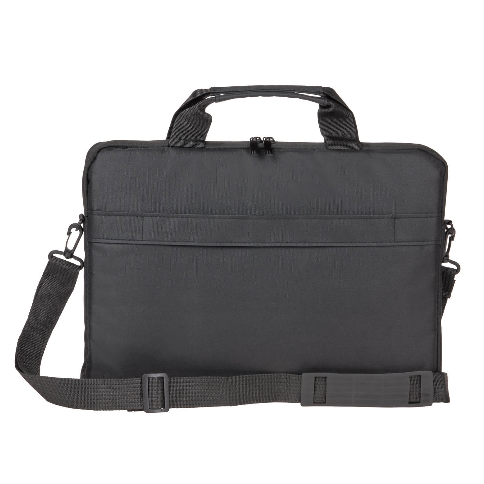 FREUD Portafolio con un compartimento principal afelpado para laptop de hasta 15", bolsa frontal con cierre, banda para carry-on, asas y correa ajustable.