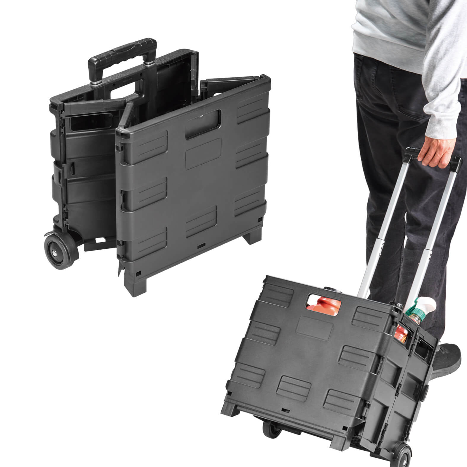 TESCO Carrito plegable portátil para supermercado, fabricado en plástico, con 2 ruedas, asa metálica retráctil y seguros a presión.