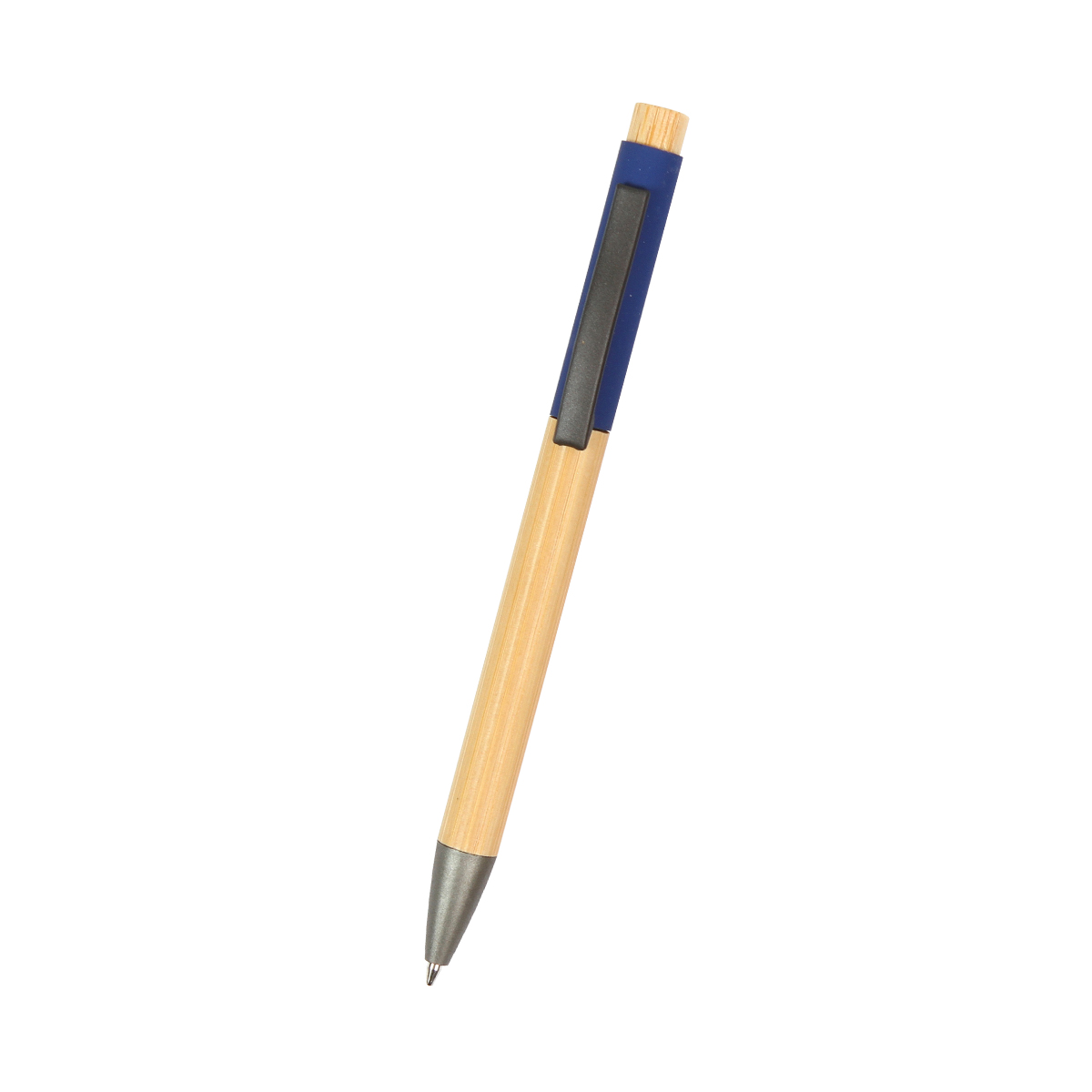 Bolígrafo Arvika. - Bolígrafo con cuerpo fabricado en madera bambú, barril superior de aluminio y clip de plástico. Mecanismo de botón. Tinta de escritura negra.