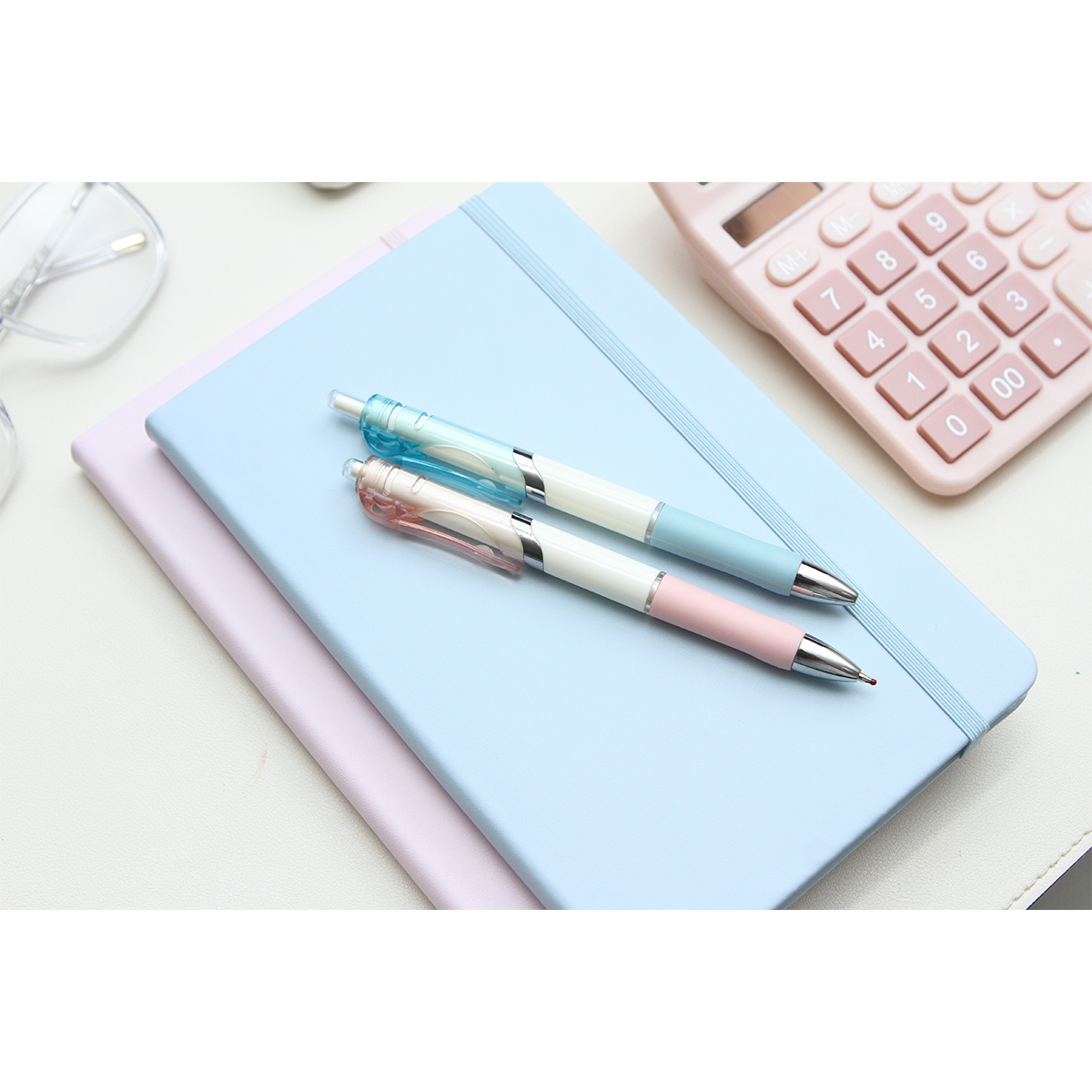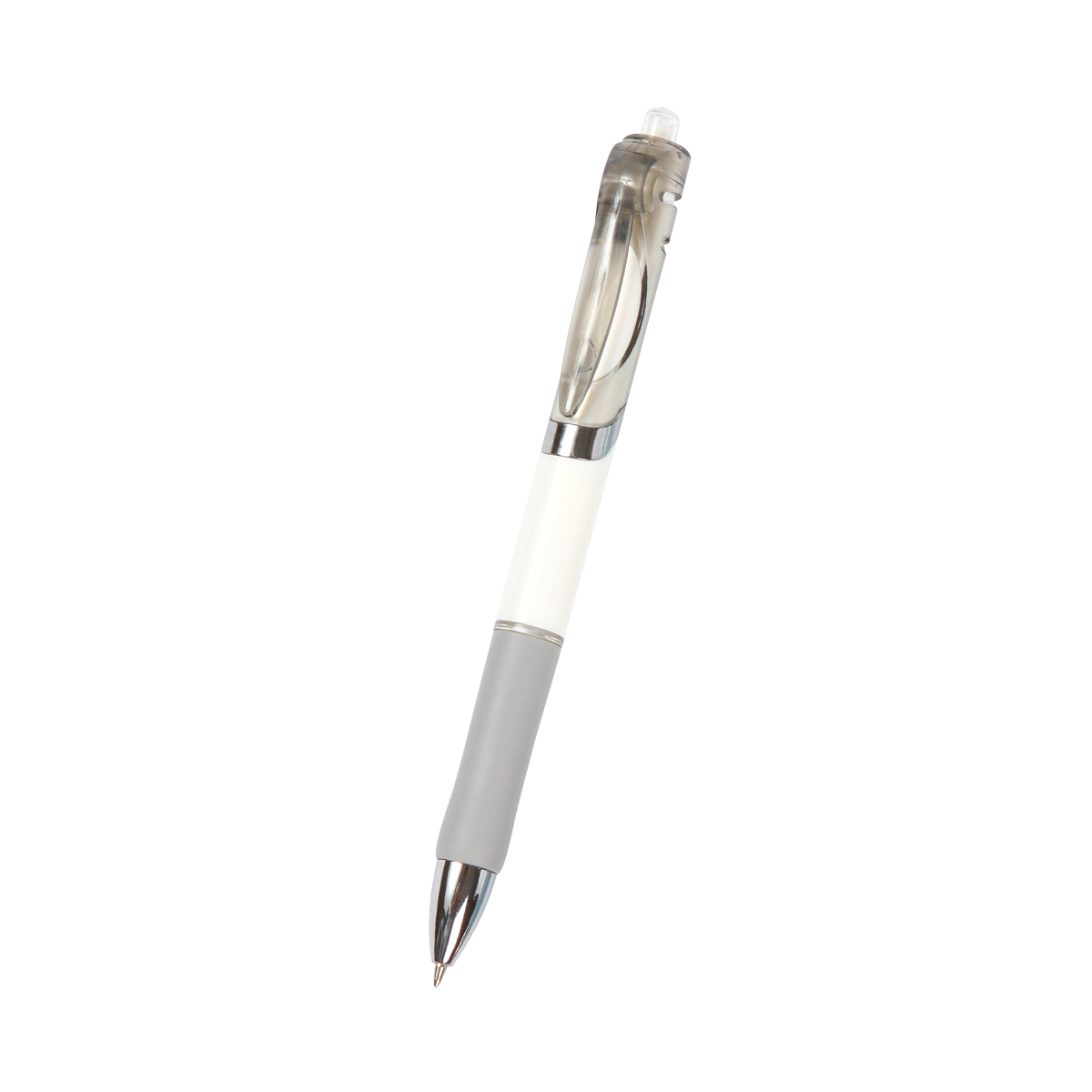 Bolígrafo Balazé. - Bolígrafo de gel de acción de empuje fabricado en plástico, barril de color blanco sólido con detalles en transparencias. Tinta de escritura color negro.