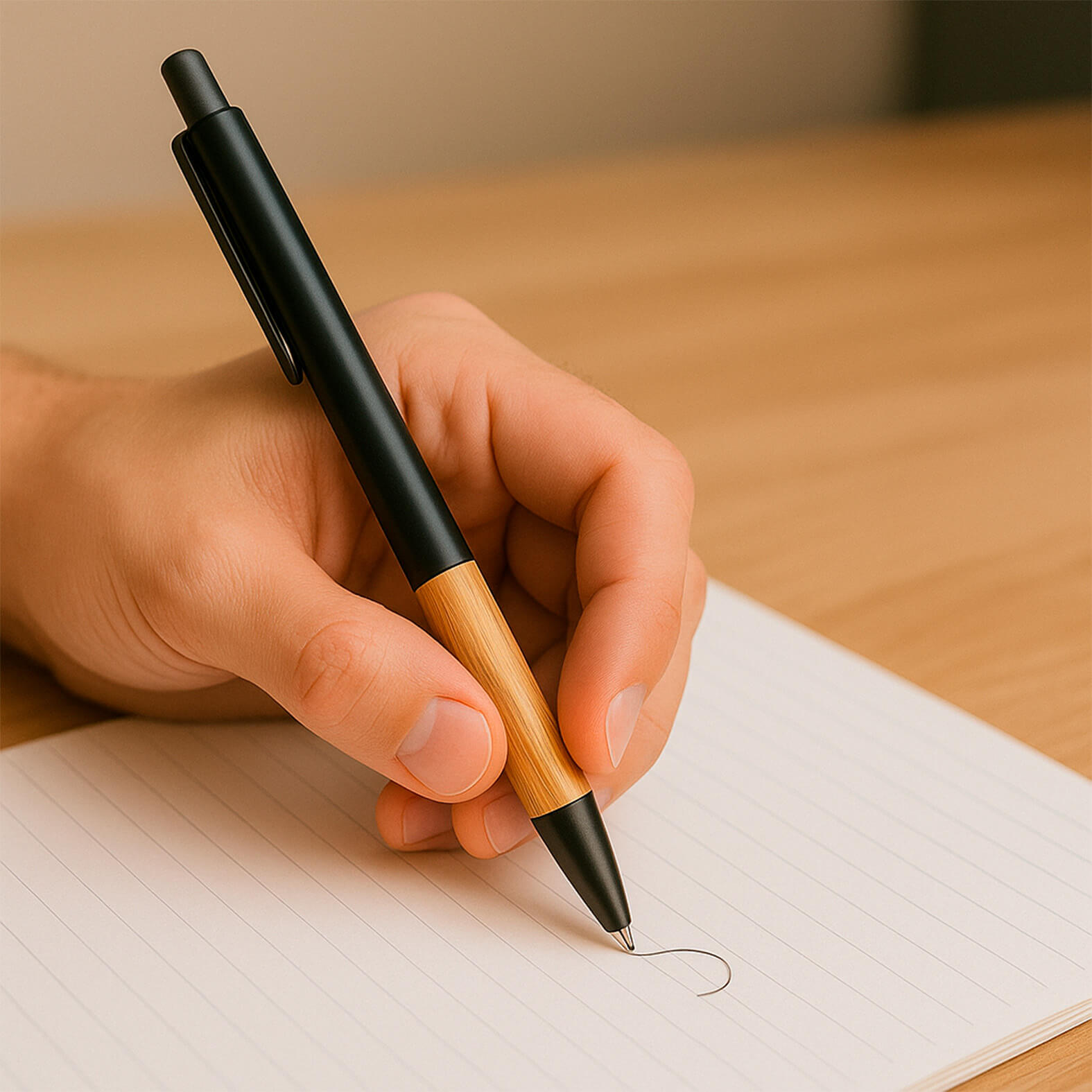 WANZI Bolígrafo de bambú con clip y mecanismo de click....