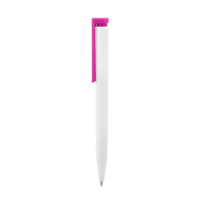 "BOLÍGRAFO CROMA II" Cuerpo blanco y clip de diferentes colores. Bolígrafo retráctil. Clip plástico de colores. Tinta negra. Sistema de botón push para destapar. Amplia área de impresión.
