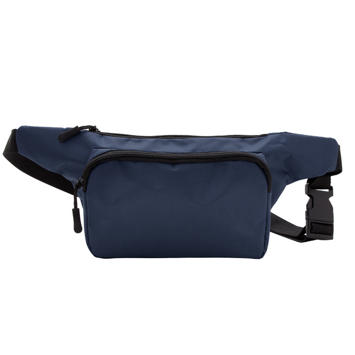 Cangurera "KONGO" Con 2 compartimentos con cierre. Amplio bolsillo frontal. Correa ajustable con herrajes plásticos. Cierres y tiradores de cierre plásticos de color negro