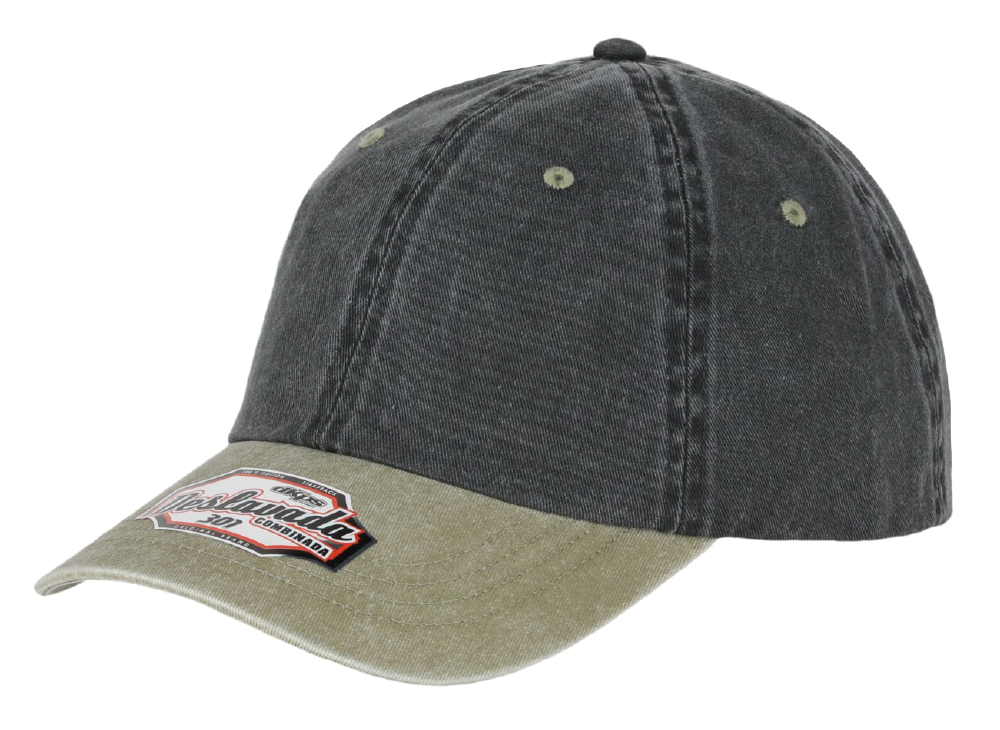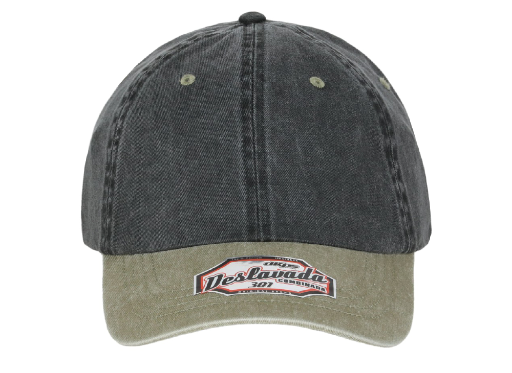DKPS #301 GORRA DESLAVADA COMB NEGRO UN GAB PIGMENTADA 100% ALG. AJUSTE VELCRO