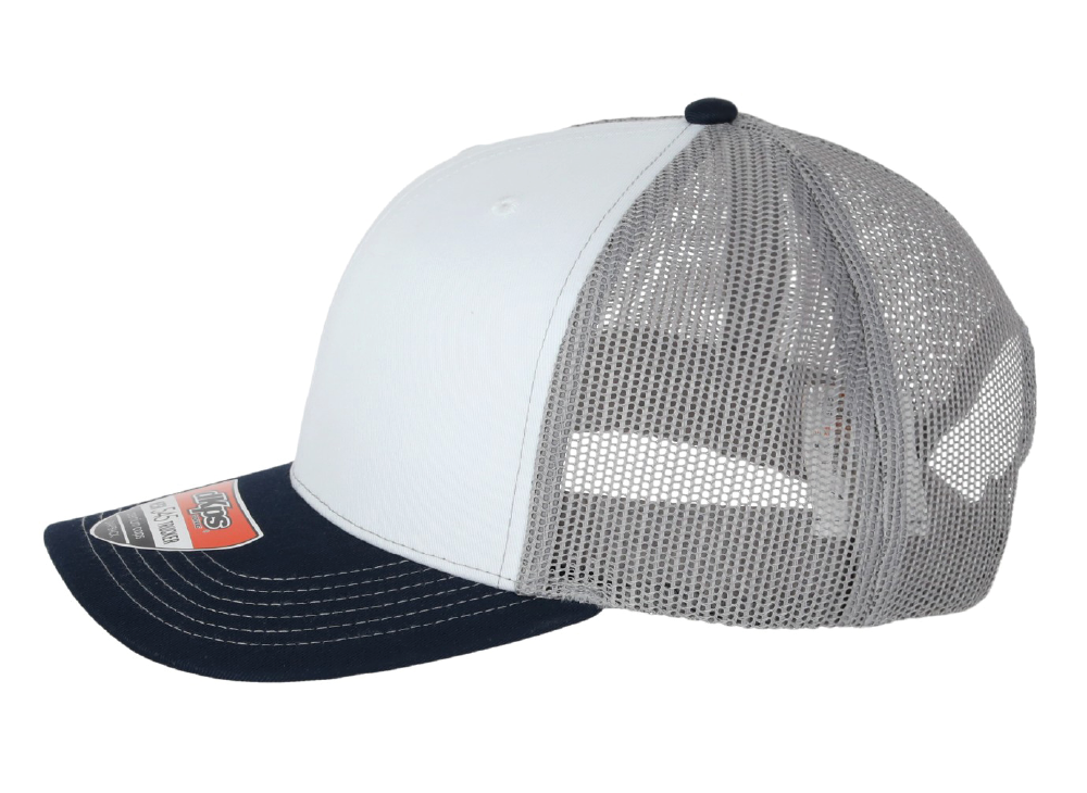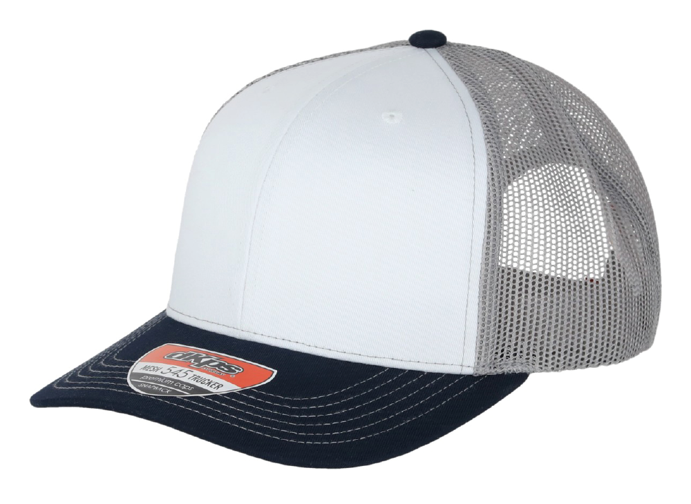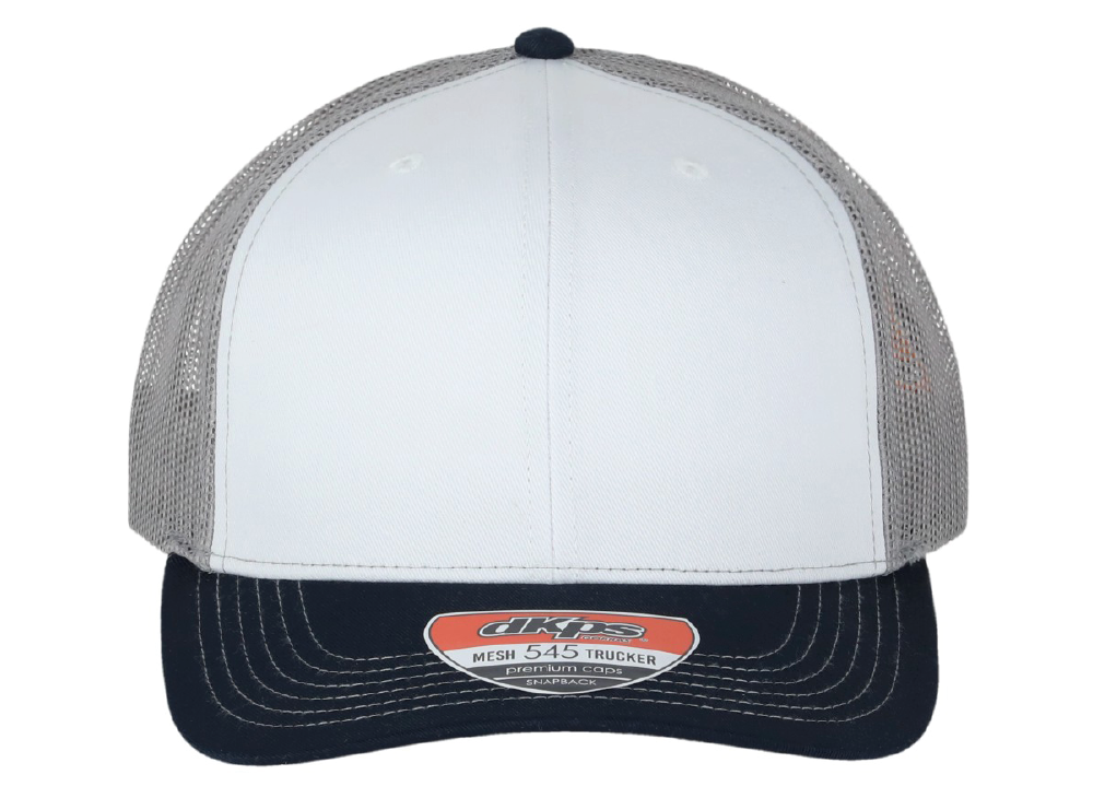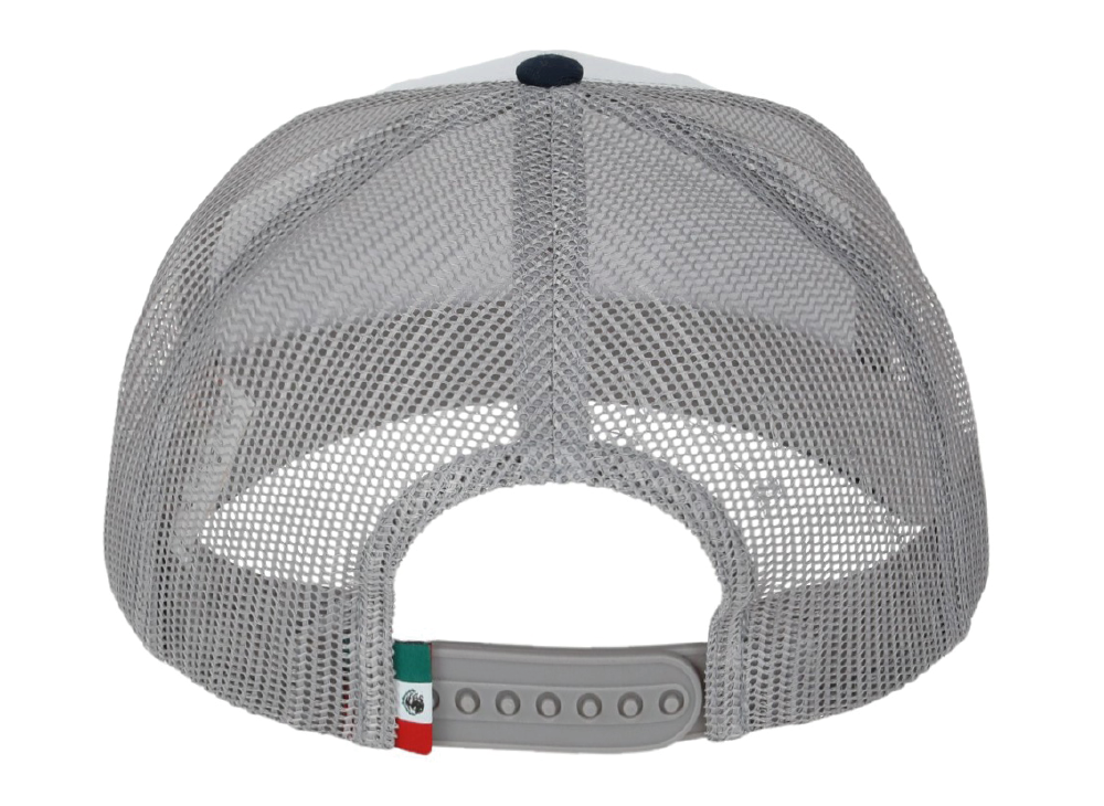 DKPS #545 GORRA MESH BLANCO-TRES, ALG 50% POL 50%, MALLA PREMIUM 6 GAJOS, AJUSTE PLASTICO