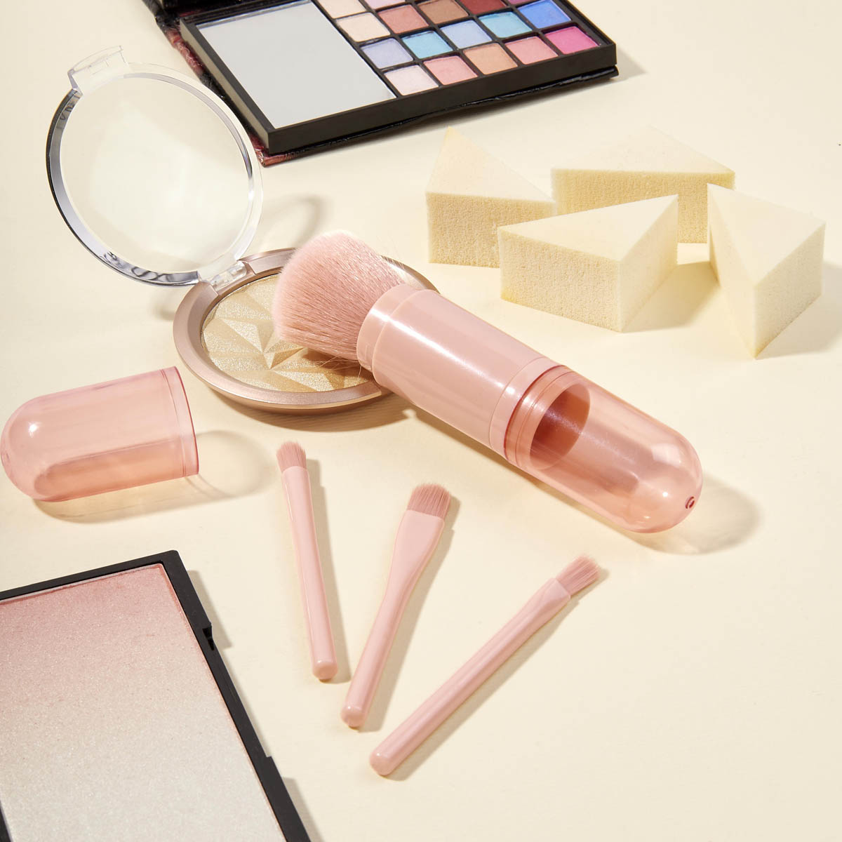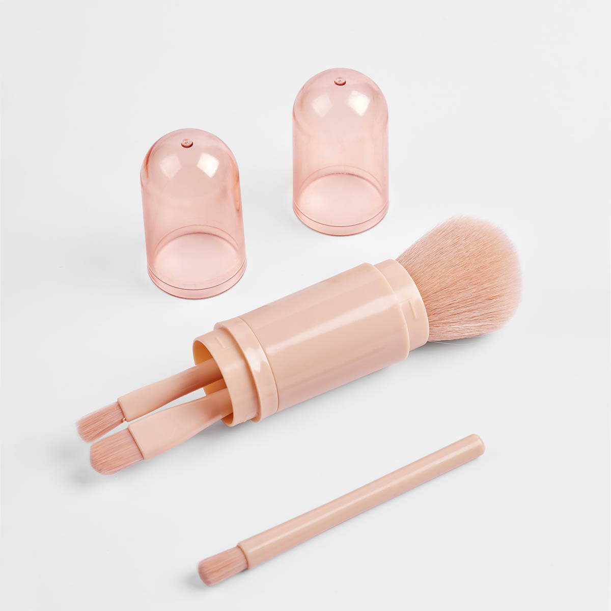 SET DE BROCHAS JULIA - Set de brochas para maquillaje 4 en 1. Este kit innovador ahorra espacio sin sacrificar lo esencial. Incluye brocha para aplicar rubor, 2 brochas de diferente grosor para la aplicación de sombras y brocha para labios. Su diseño retráctil lo hace fácil de guardar y su practico estuche te ayuda a mantenerlos protegidos.