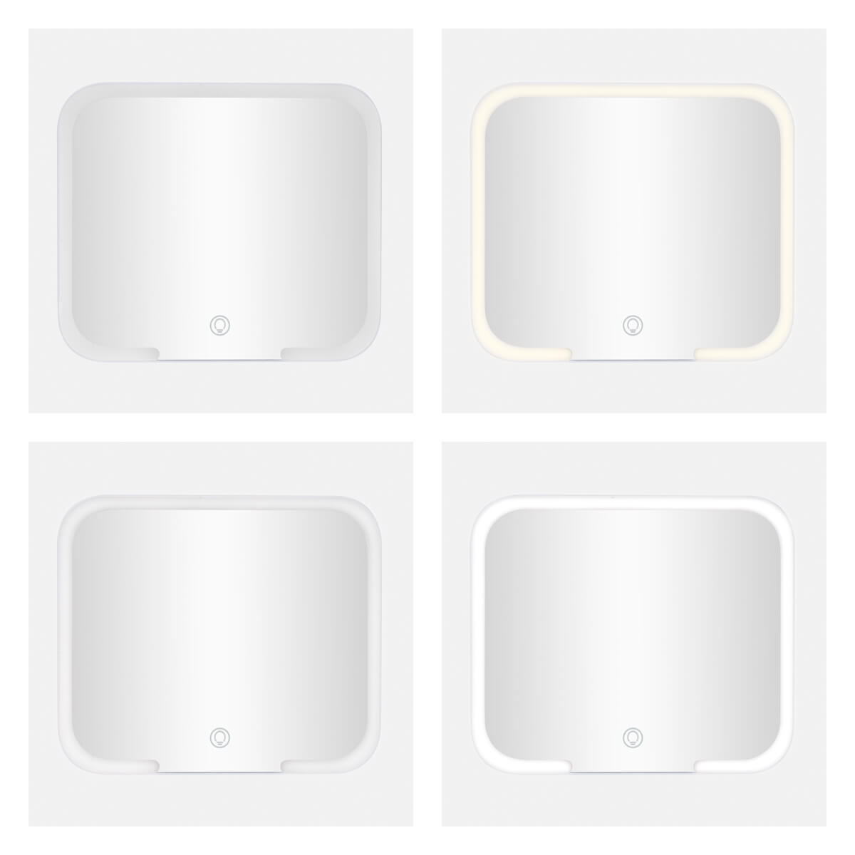 COSMETIQUERA KAELIS - Organizador de maquillaje y brochas. En su interior contiene un amplio espejo de iluminación LED con 3 modos de luz: fría, natural y cálida, las cuales cambian pulsando el botón del sensor táctil one touch. Duración de luz 2 hrs. Puerto de carga tipo C. Incluye cable de carga tipo C.