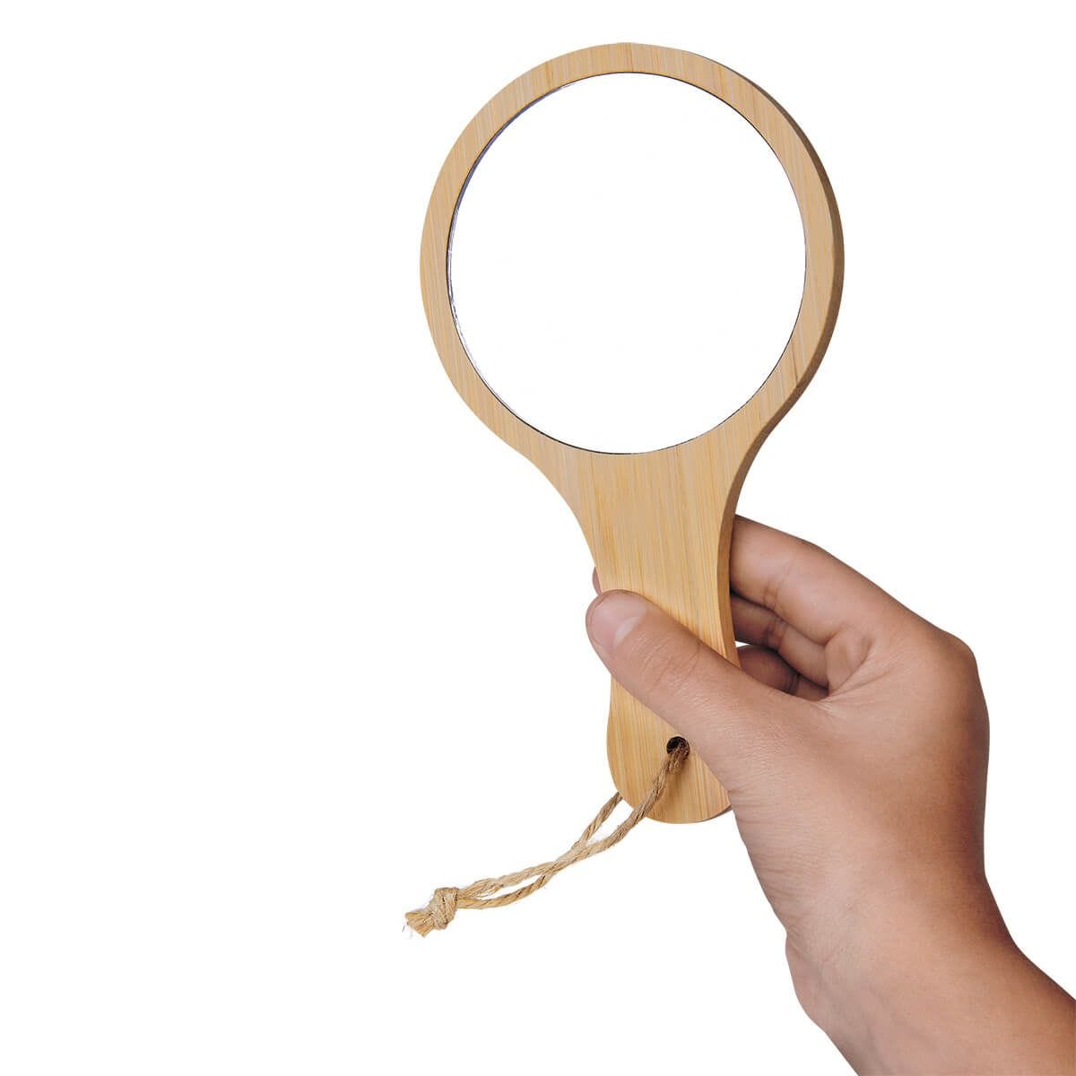 ESPEJO ANIANI - Espejo de bambú con mango. Incluye cordón.
