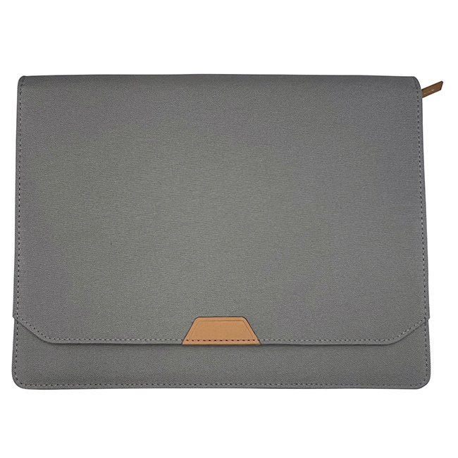 Porta Documentos Yakarta Porta Documentos Yakarta l Incluye block de hojas rayadas. l Interior con portabolígrafos y compartimentos organizadores l Cierre en zipper l Detalle de lengüeta al frente en curpiel l Colores: Gris y Negro. Material: PET reciclado Medida: 32 x 24 cm Impresión: Serigrafía Área de Impresión: 10 x 4 cm