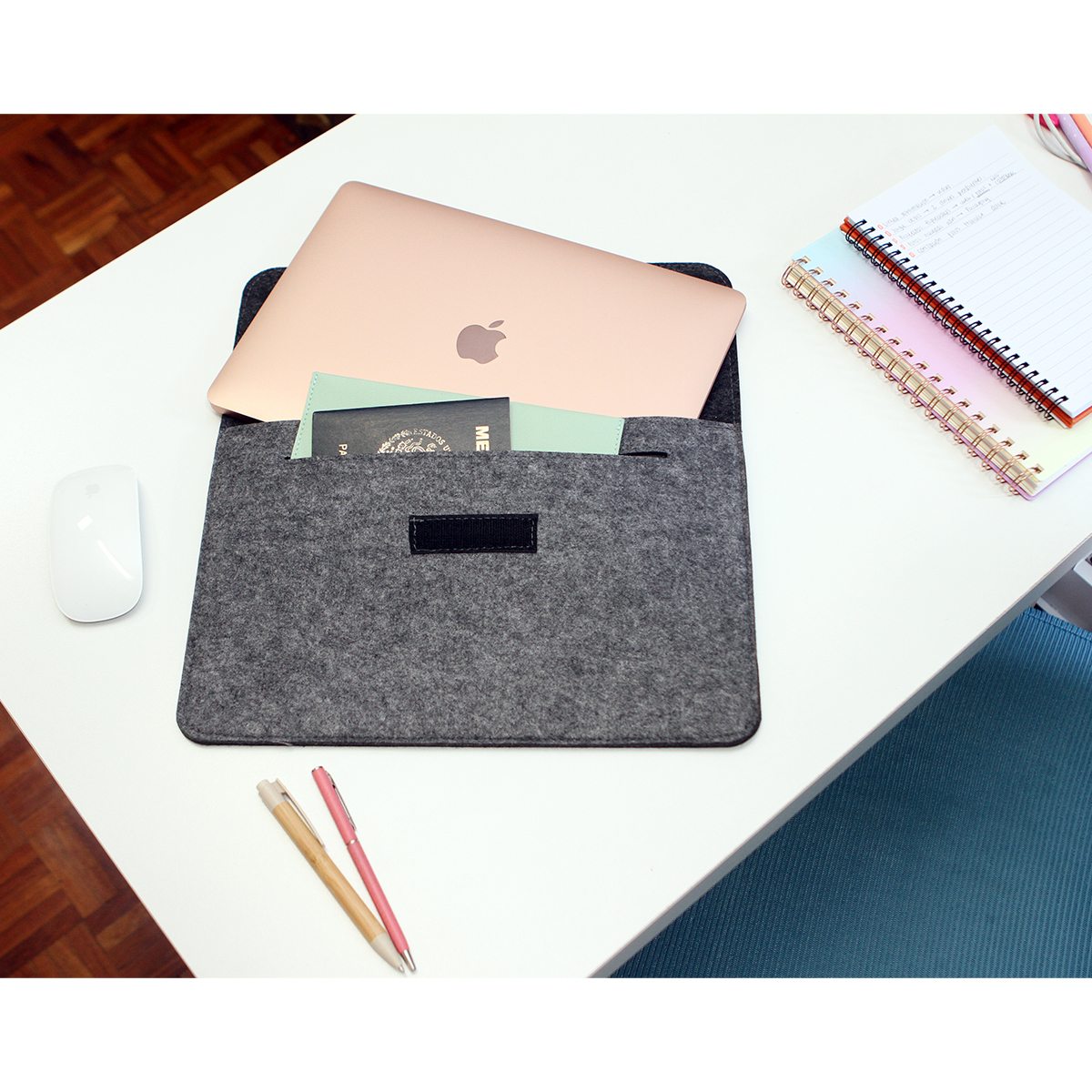 Funda Cariola. - Funda para laptop, fabricada en fieltro, con un cierre de velcro, y un detalle de curpiel que le da un toque de estilo y personalidad,  con un doble compartimento, lo que te permite guardar y organizar no solo tu laptop, sino también otros accesorios esenciales.