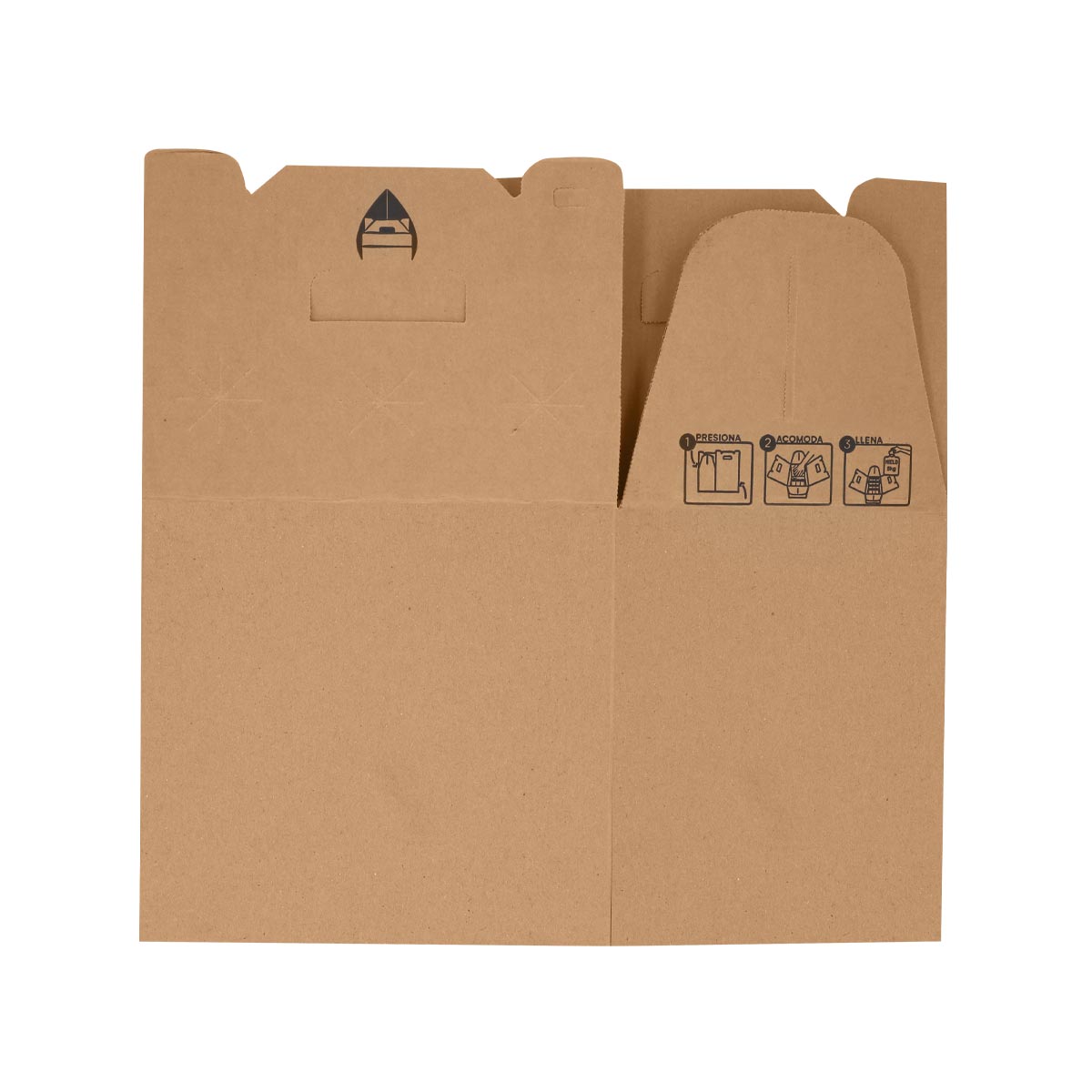 MATERIAL: Cartón Kraft MEDIDAS: 27.7 x 25.5 x 20.3 cm IMPRESION: Serigrafía MED. EMPAQUE: 48.8 x 37 x 47.2 cm PESO EMPAQUE: 2.45 Kg PIEZAS EMPAQUE: 25