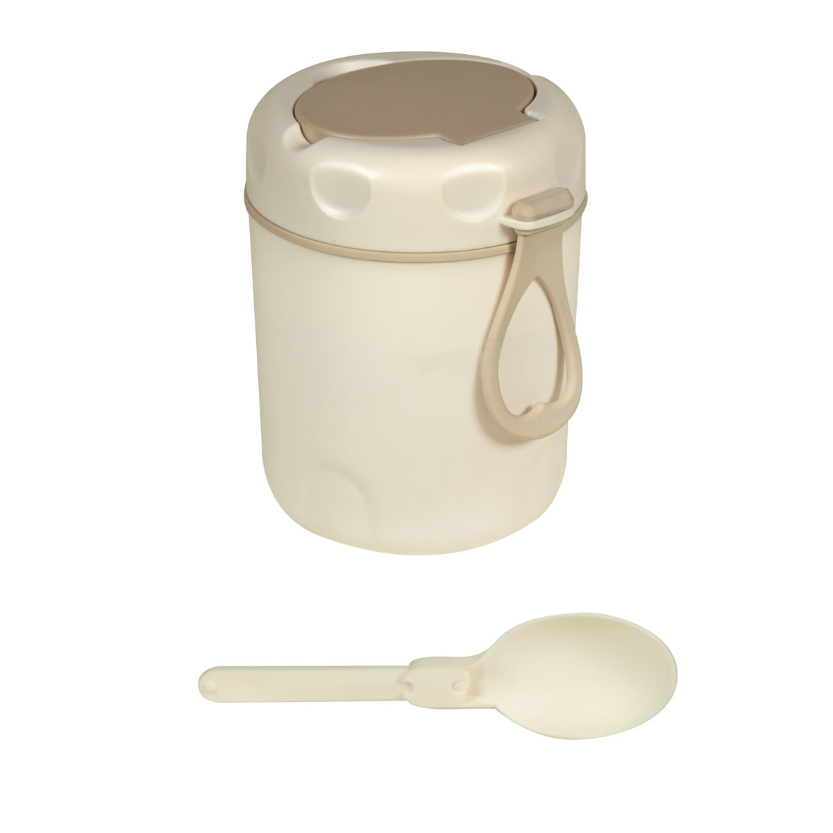 PORTAVIANDAS MISTO - Contenedor de alimentos con interior de acero inoxidable, perfecto para conservar la temperatura de los alimentos por más tiempo. Su tapa de rosca garantiza un sellado hermético, evitando derrames indeseados durante su transporte. Además, incluye una cuchara plegable, misma que se guarda en un compartimento integrado en su tapa. Con un diseño compacto, este contenedor es ideal para llevar tus alimentos de manera fácil y sin complicaciones. Apto para el uso en lavavajillas. No apto para uso en microondas.